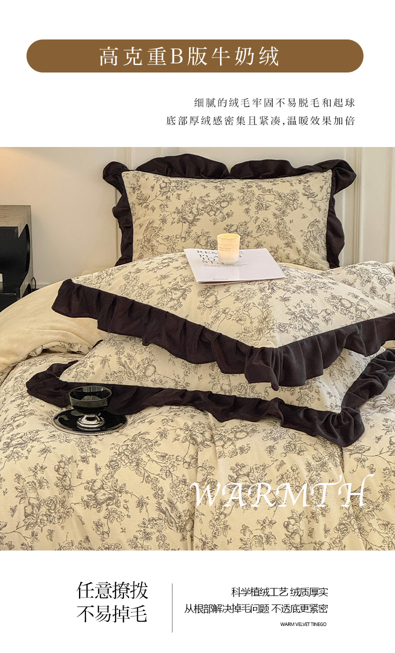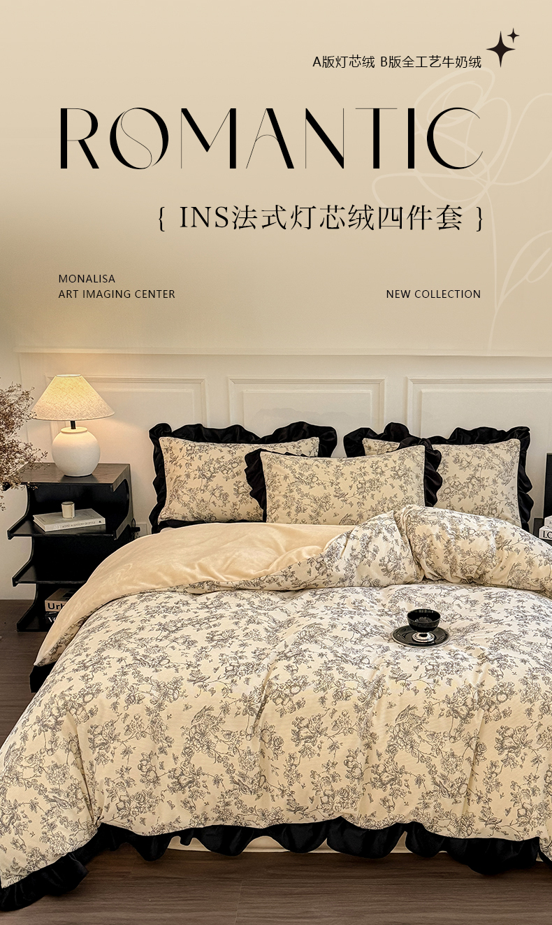当前位置: 91家纺网 > 商品网购 > 床品套件 > 四件套 > 牛奶绒四件套 > 宅家居 2025新款秋冬爆款轻法式赫本风灯芯绒四件套提花立体韩版花边牛奶绒三件套 喜鹊