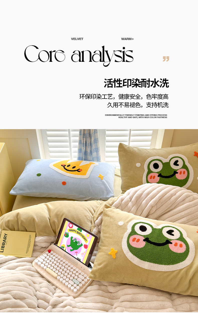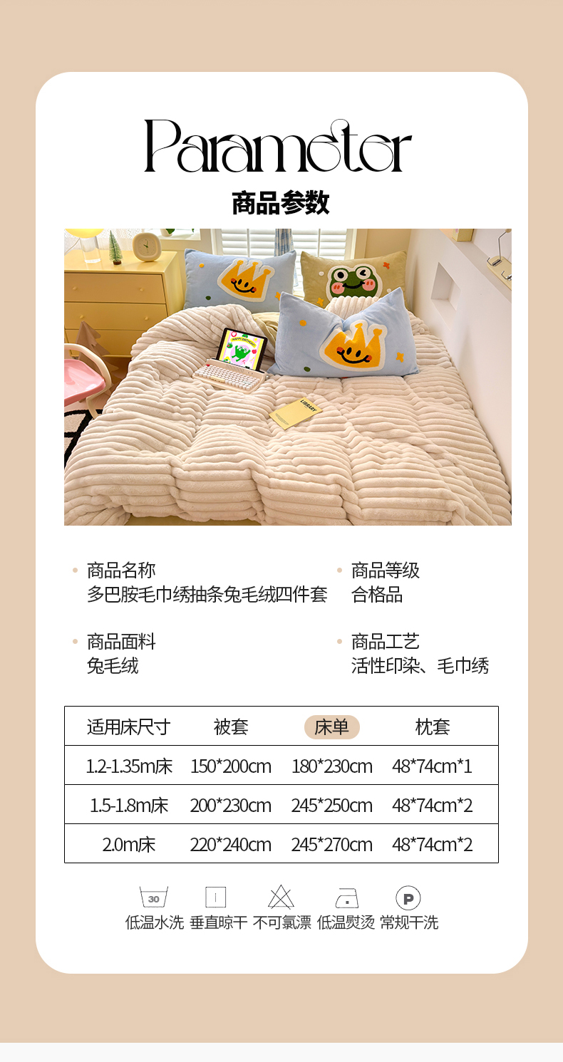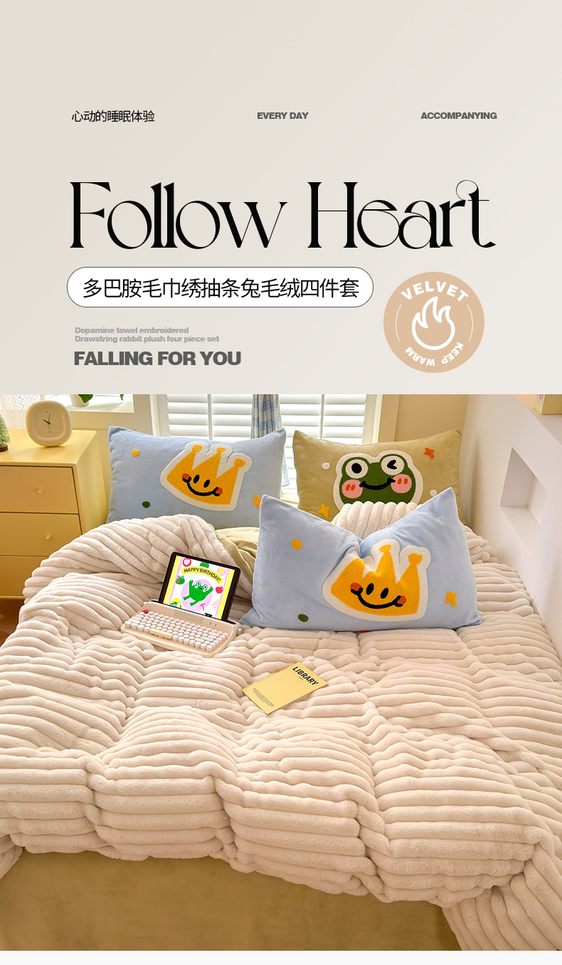 当前位置: 91家纺网 > 商品网购 > 床品套件 > 四件套 > 兔毛绒四件套 > 懒猫家纺 2025新款多巴胺毛巾绣兔毛绒抽条四件套系列 青蛙王子