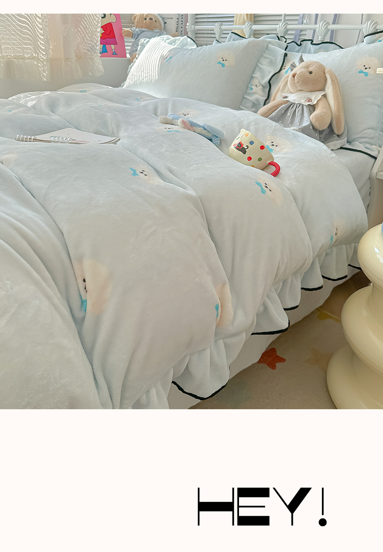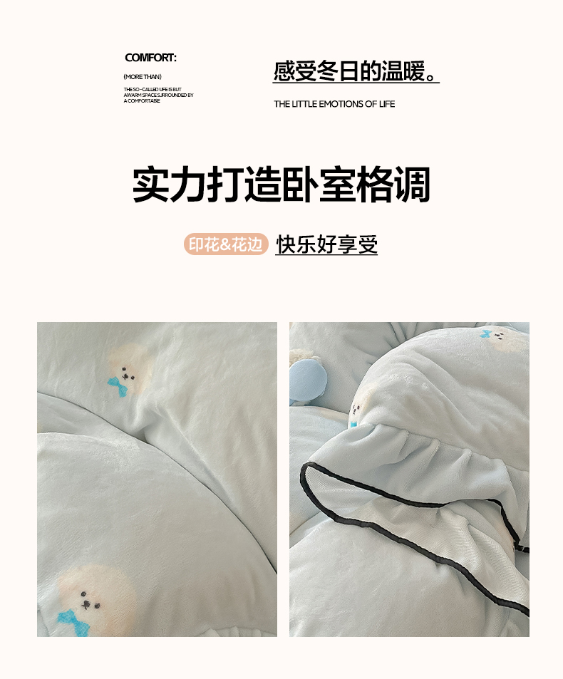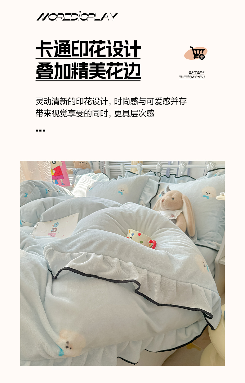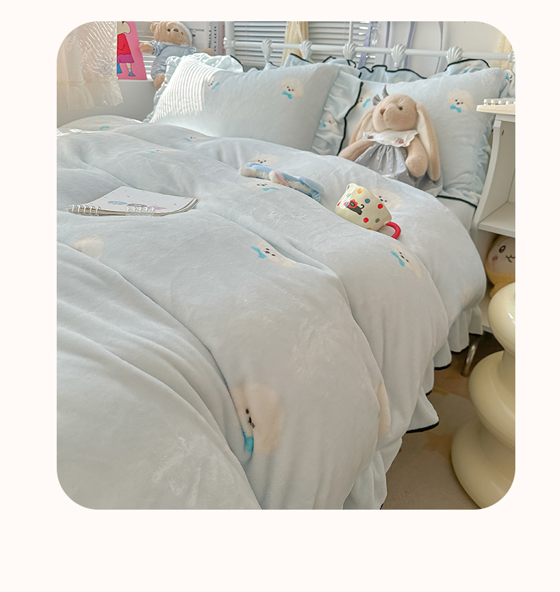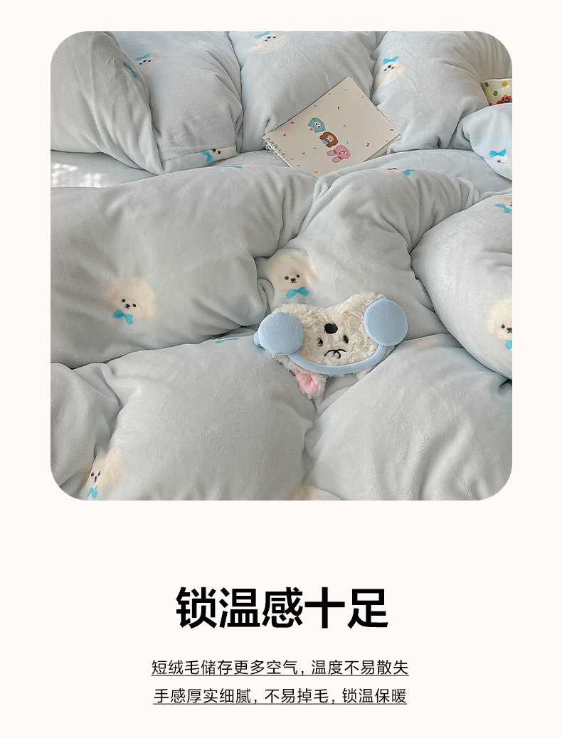 当前位置: 91家纺网 > 商品网购 > 床品套件 > 四件套 > 牛奶绒四件套 > 韩都家居 2025新款亲肤舒适韩版温暖牛奶绒四件套-花边款 蝴蝶结小狗-兰
