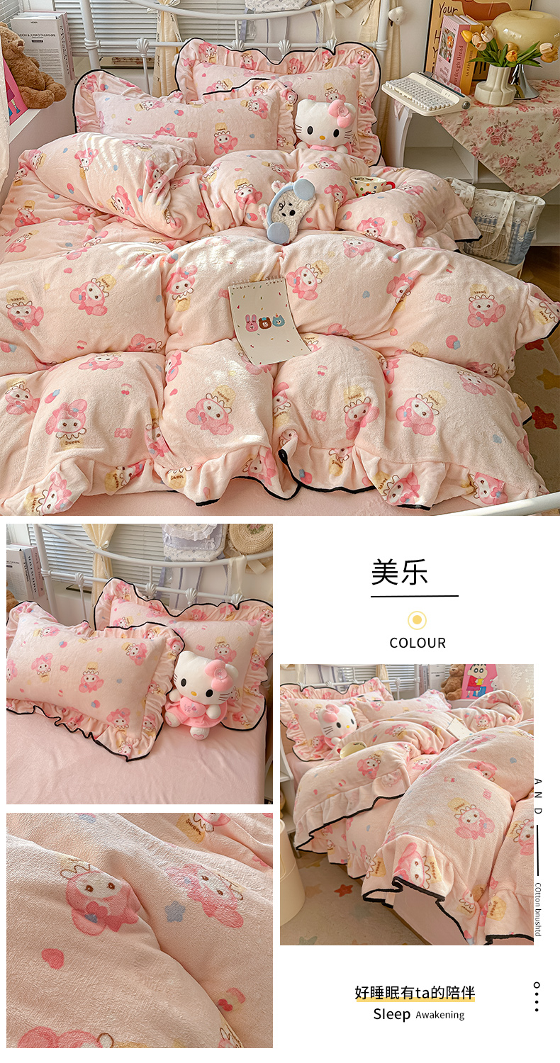 当前位置: 91家纺网 > 商品网购 > 床品套件 > 四件套 > 牛奶绒四件套 > 韩都家居 2025新款亲肤舒适韩版温暖牛奶绒四件套-花边款 奶油草莓