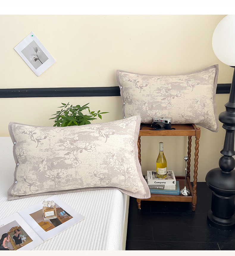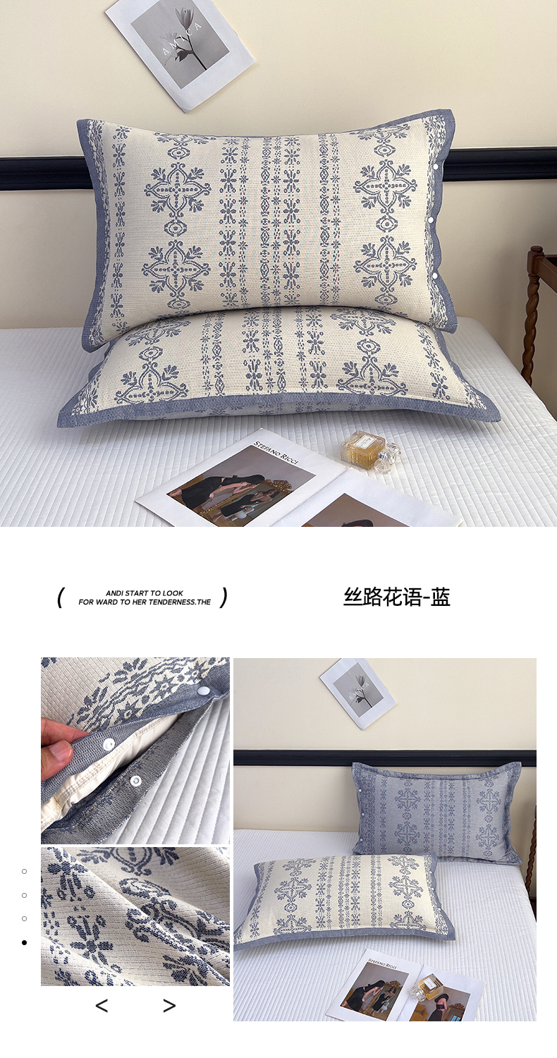 (总)悦然毛巾被 2025新款全棉四层提花纱布美拉德凤格枕套,花蝶红,花蝶咖,花蝶蓝,蔓叶咖,蔓叶蓝,蔓叶棕,玫瑰格调咖,玫瑰格调棕,素布花灰,素布花蓝,野韵,野韵棕,组合