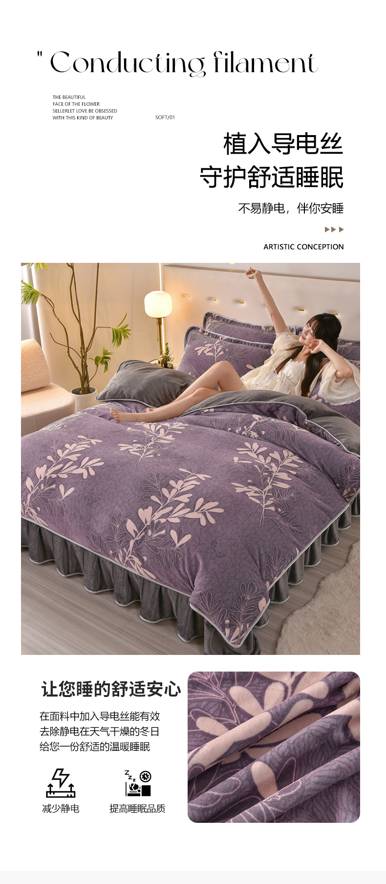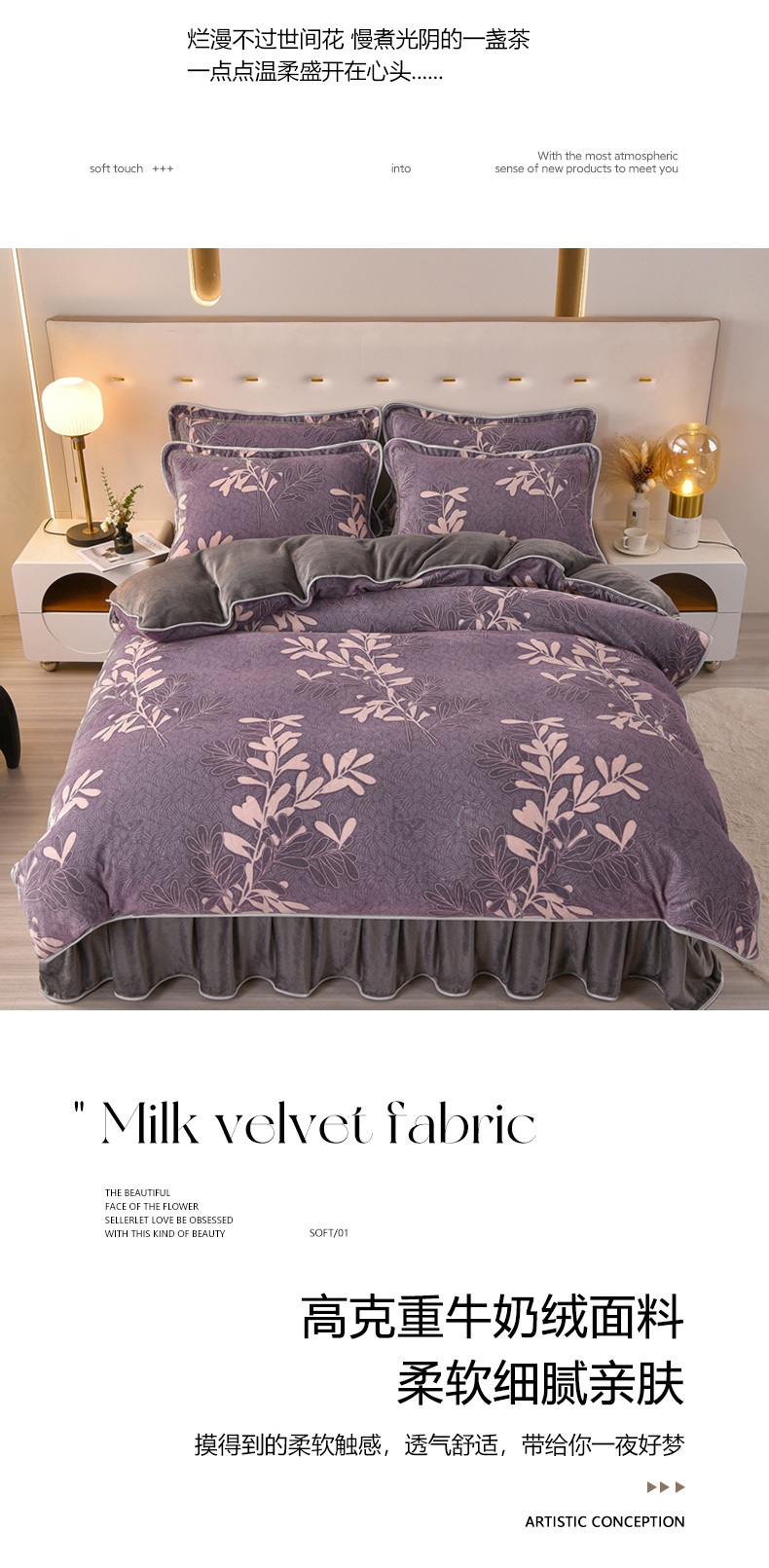 亿品2025直播爆款9.5斤牛奶绒四件套加厚保暖床裙四件套 情人草