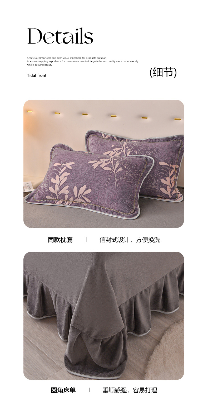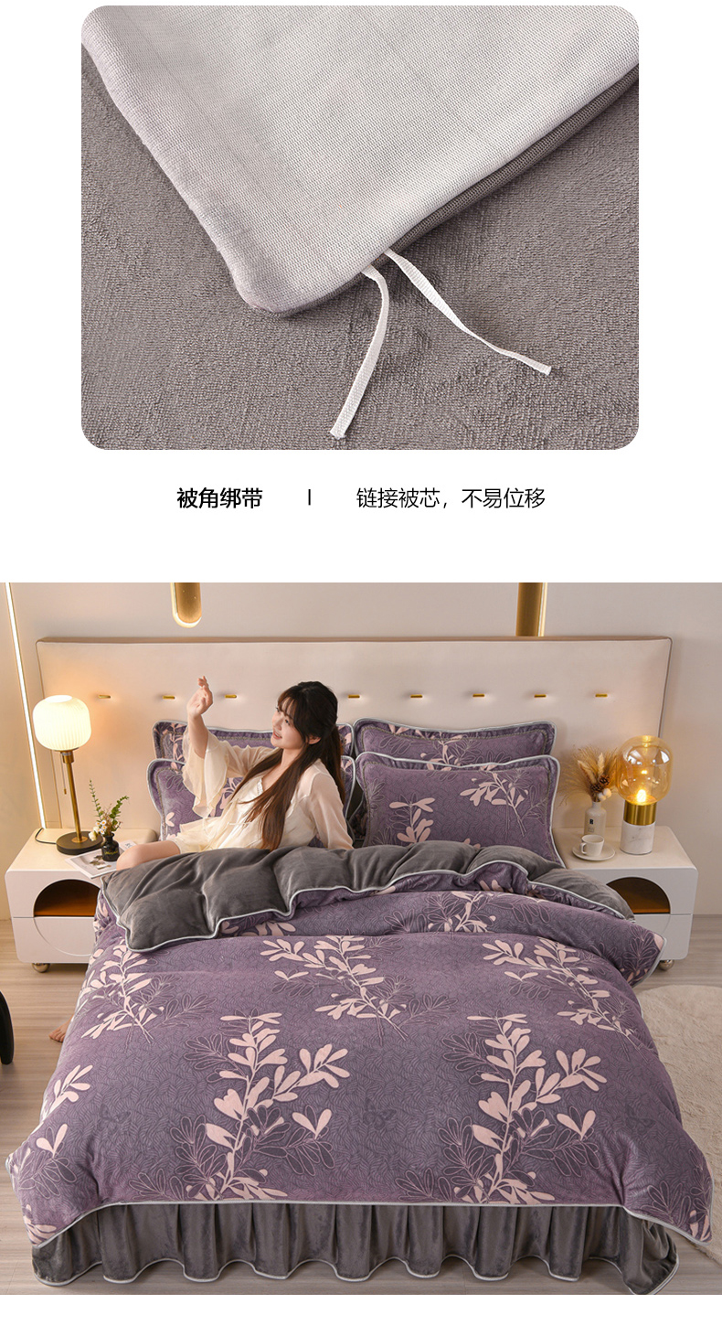 亿品2025新款直播爆款韩版赫本风高克重牛奶绒四件套床裙款 8.5斤(有买家秀加v) 花边紫韵,花边紫韵
