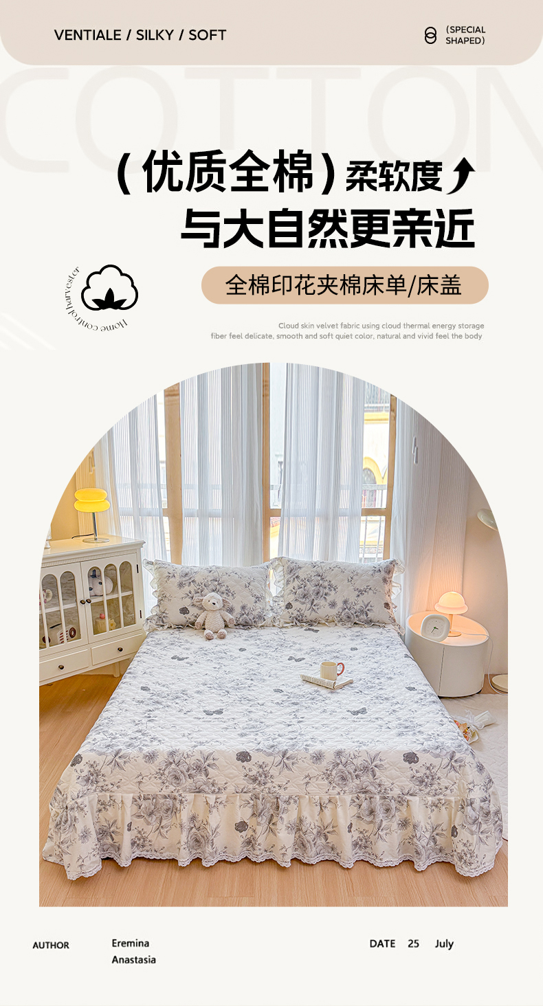 商品名称:(总)爱妮玖玖 2025新款全棉小白边夹棉床盖四件套