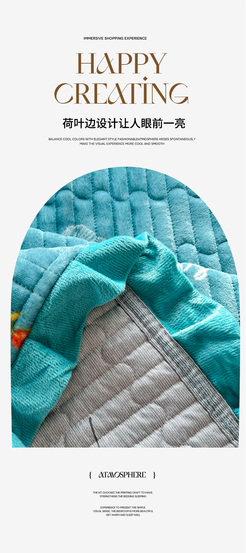 (总)默忆 2025新款牛奶绒夹棉花边韩版印花床盖三件套加厚保暖多功能单床盖,库洛米紫,蓝大格,哪吒-粉,美丽花园,菱形世界,蝴蝶结,豹纹KT,拉布布,哪吒-蓝,松鼠乐园,穗穗平安,甜心樱桃,心心相印,一举夺葵,银杏叶-蓝,月亮宝贝,竹叶蝴蝶,花妖