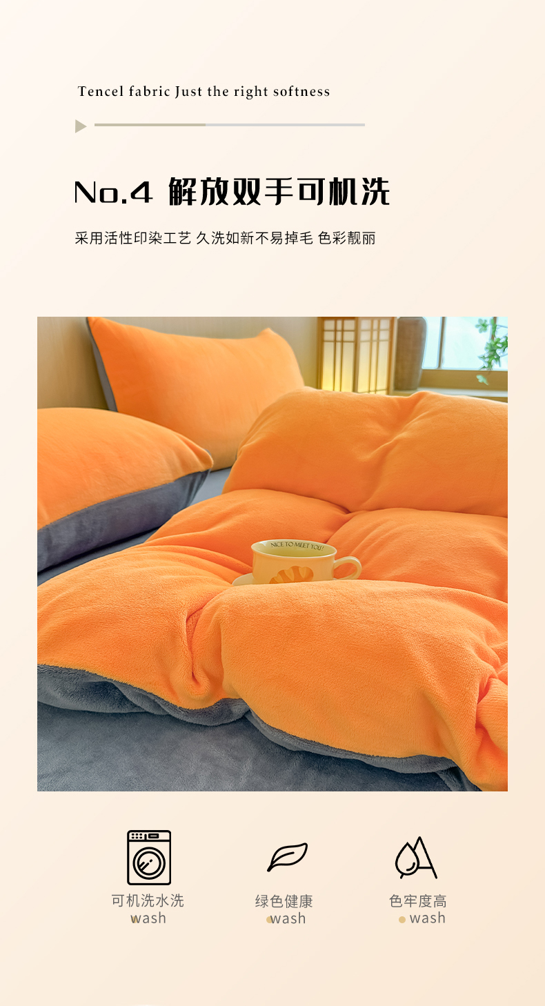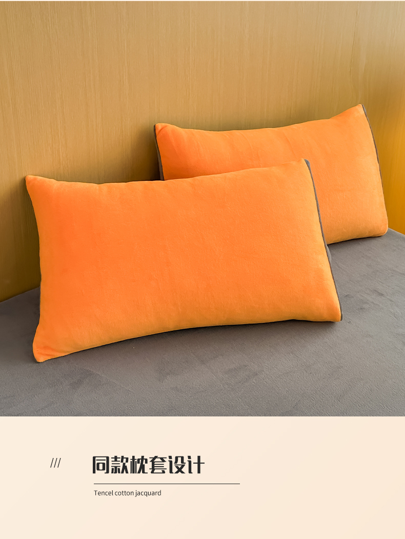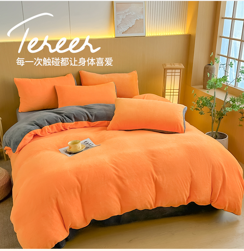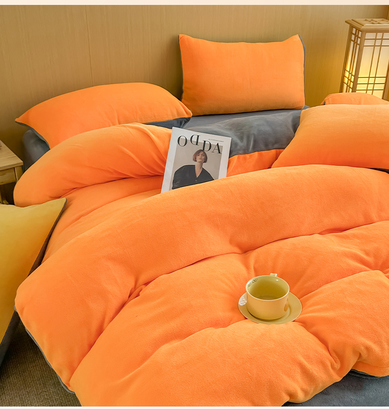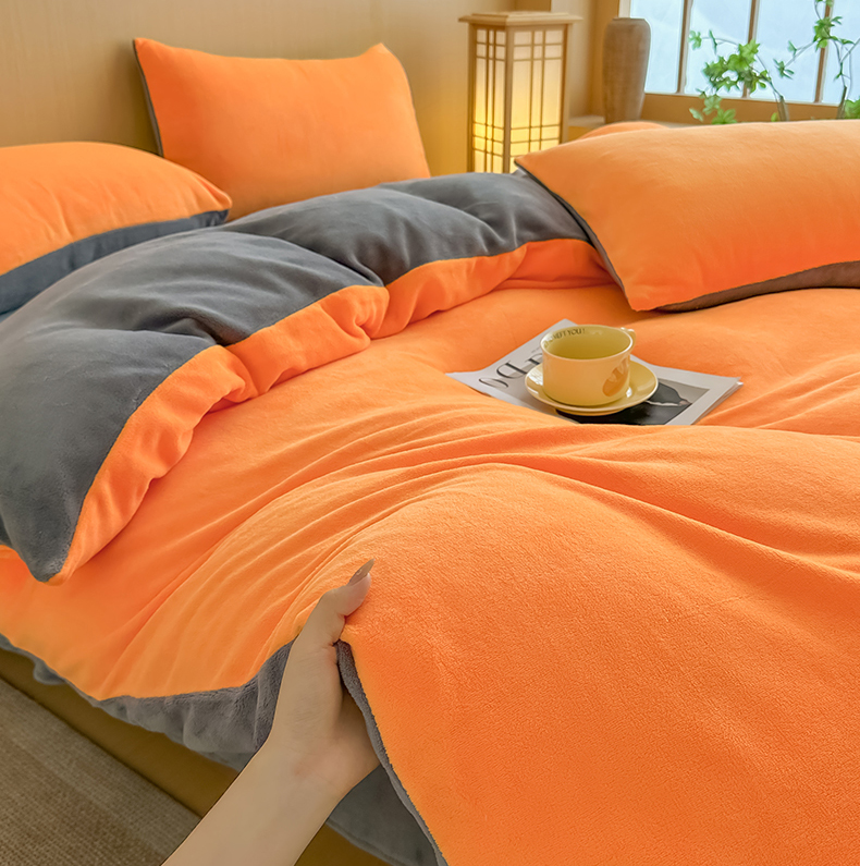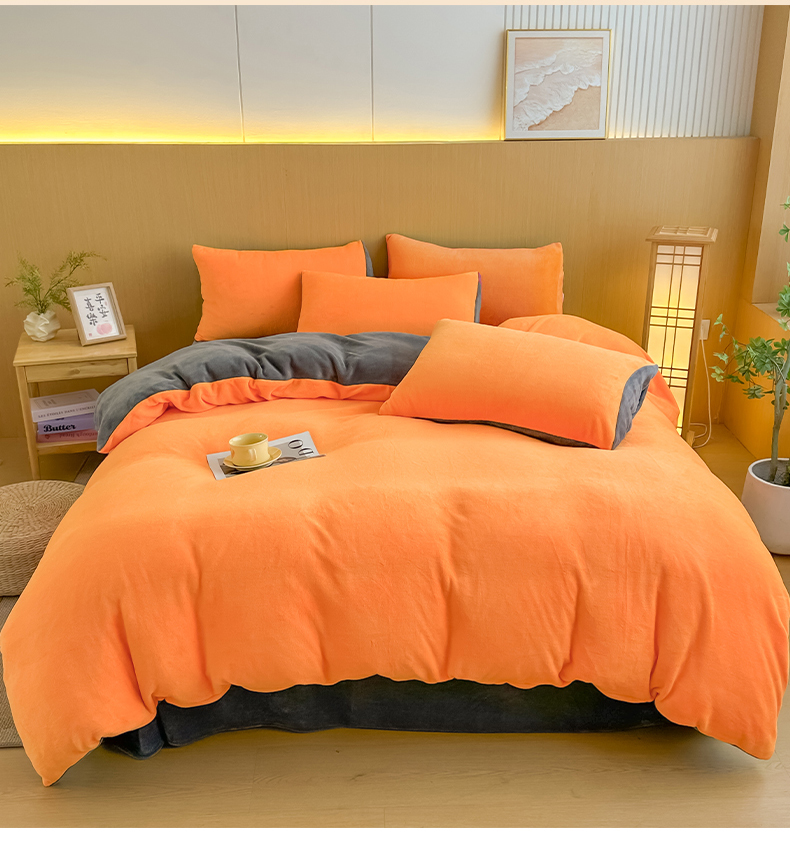 商品名称:小懒猪 2025新款220克A类牛奶绒纯色双拼四件套(提供买家秀) 橙灰