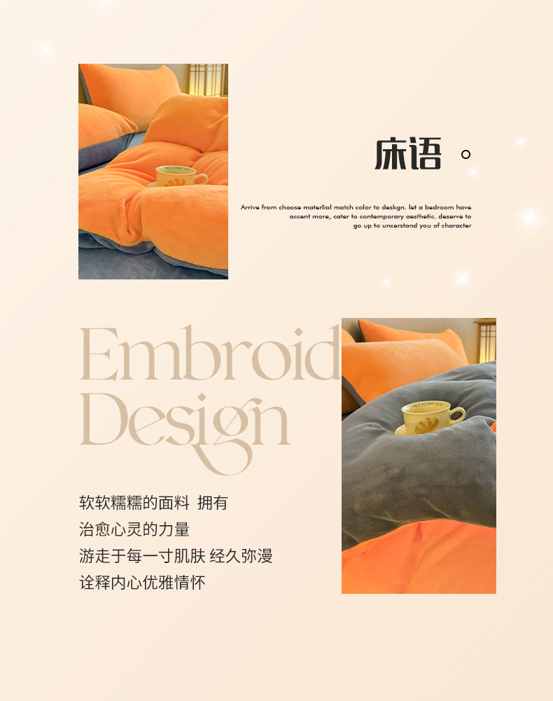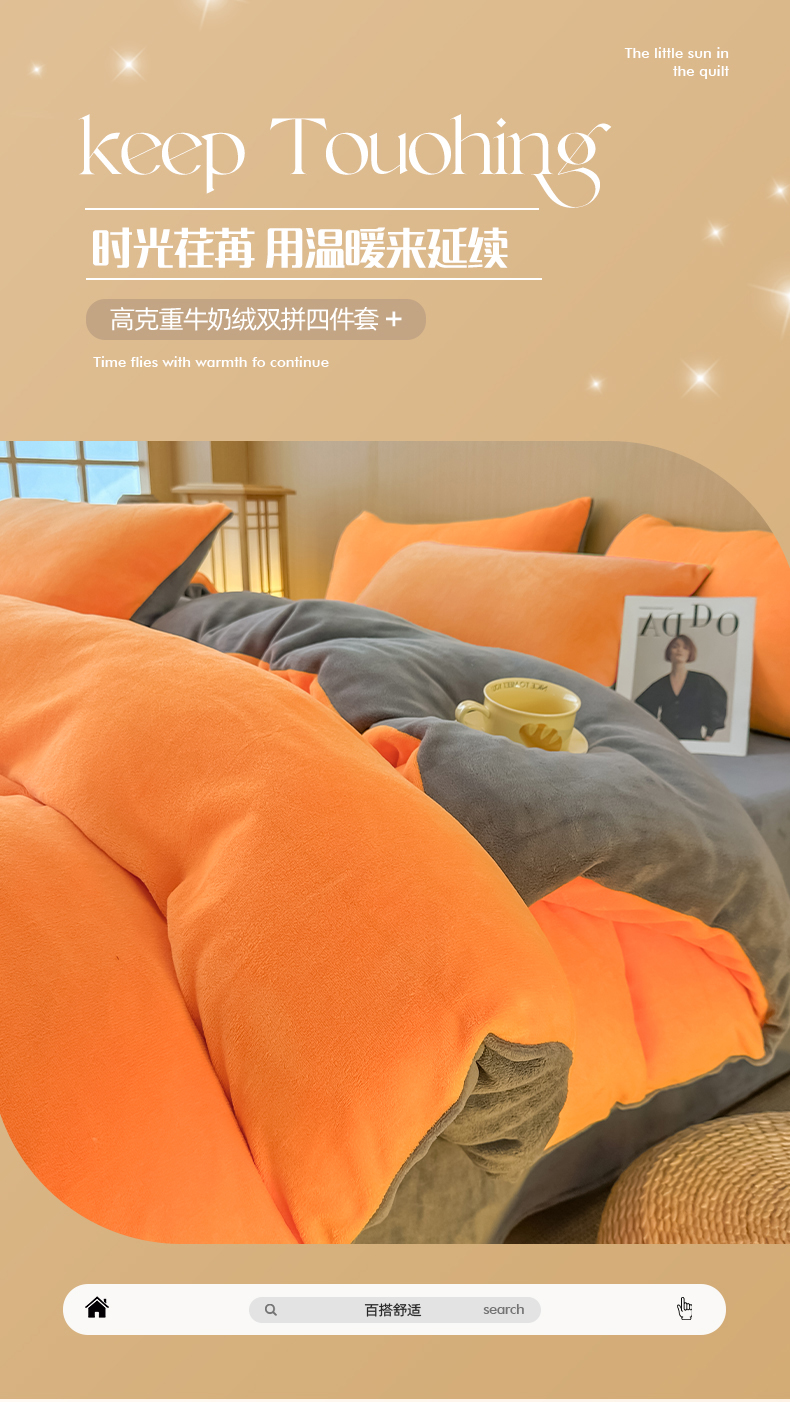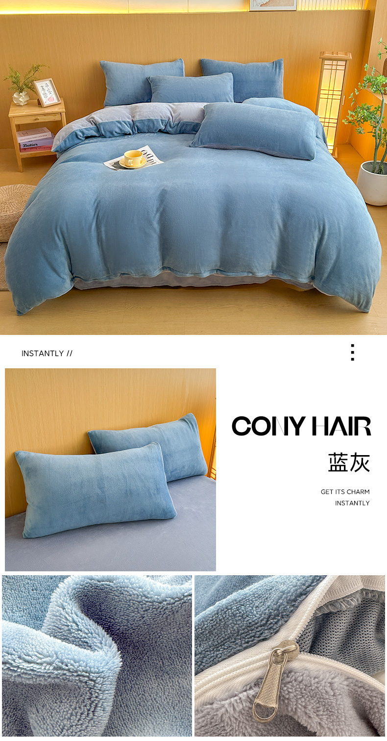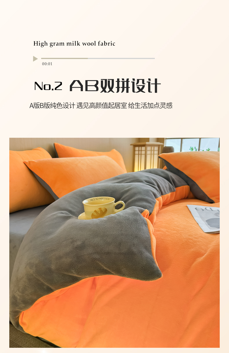 商品名称:小懒猪 2025新款220克A类牛奶绒纯色双拼四件套(提供买家秀) 橙灰