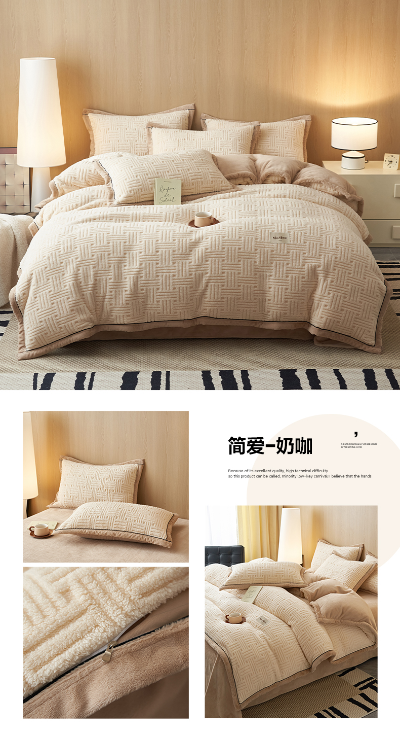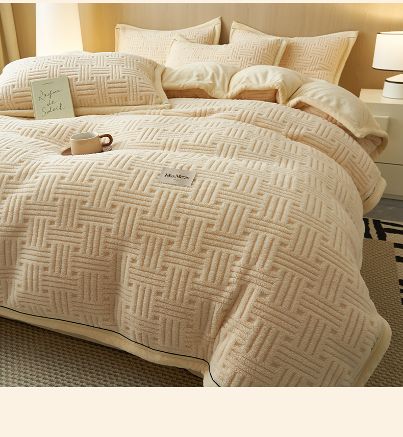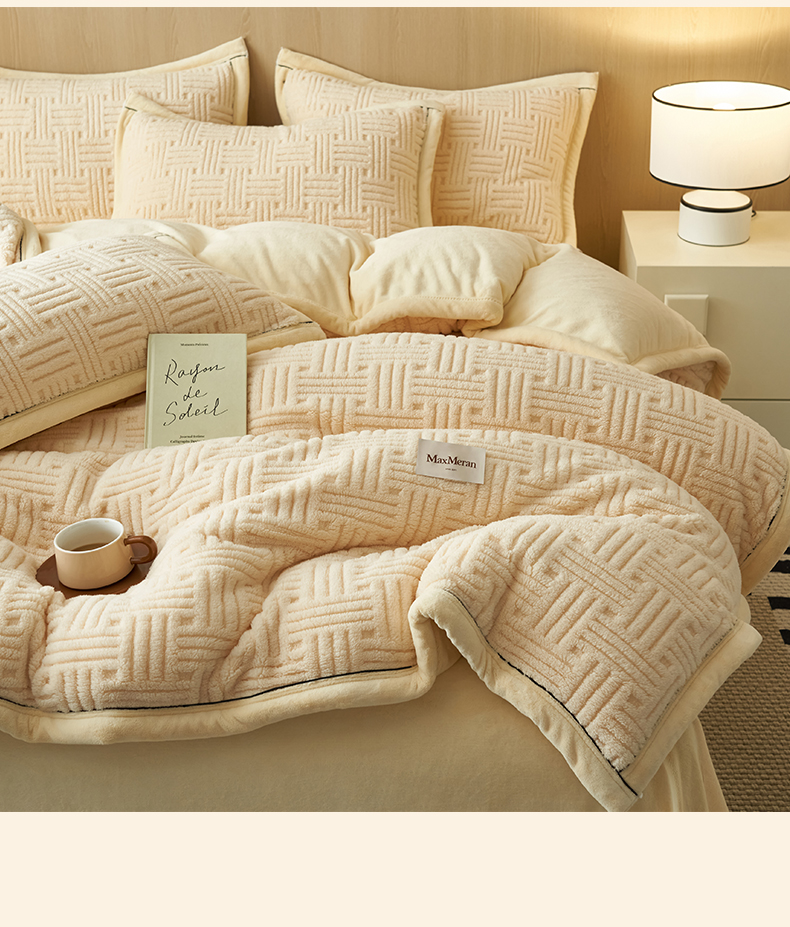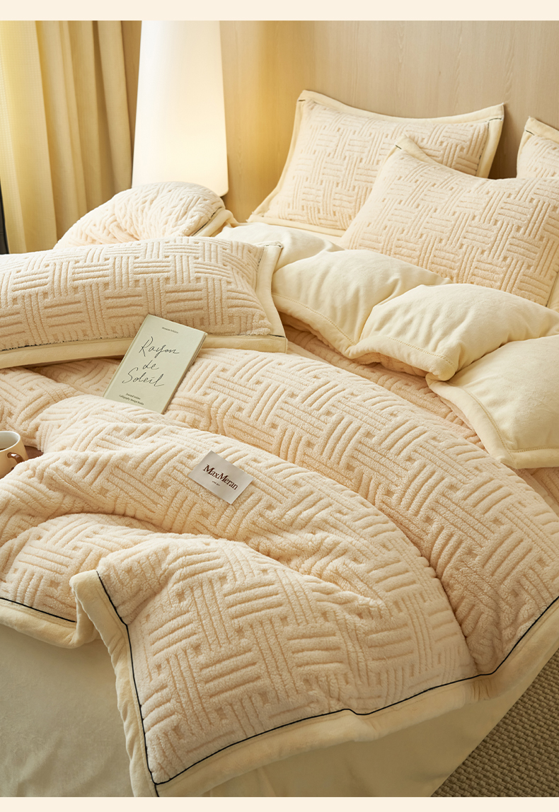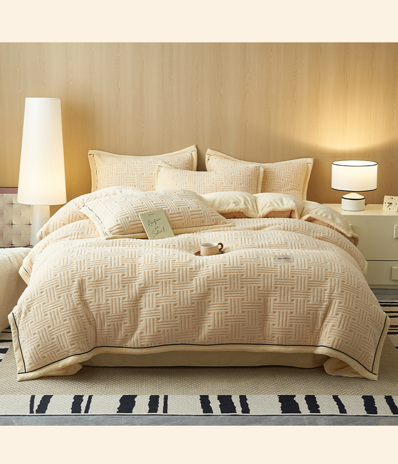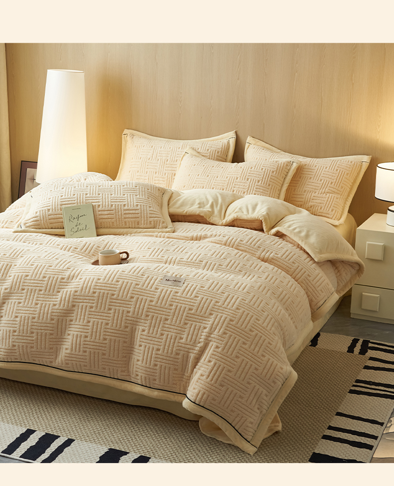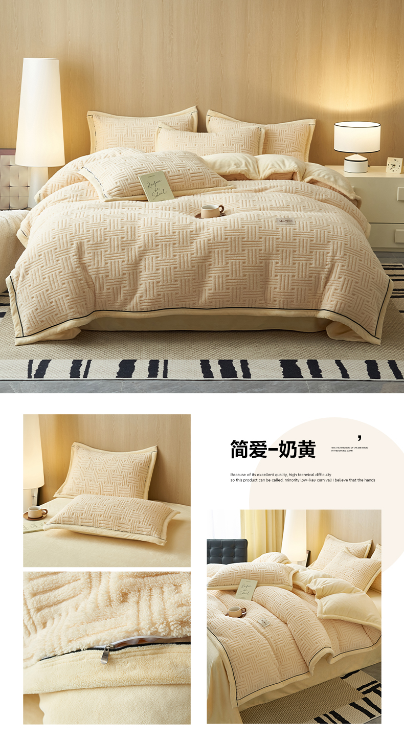 当前位置: 91家纺网 > 商品网购 > 床品套件 > 四件套 > 牛奶绒四件套 > 晨曦家纺 2025新款230克加厚保暖塔芙绒牛奶绒四件套法兰绒 简爱-奶黄