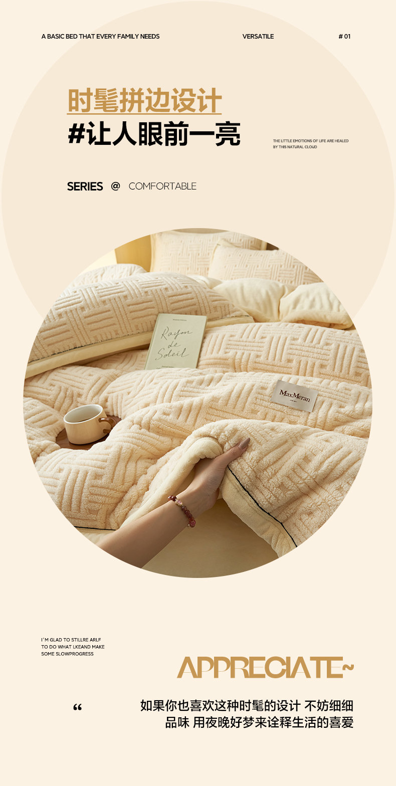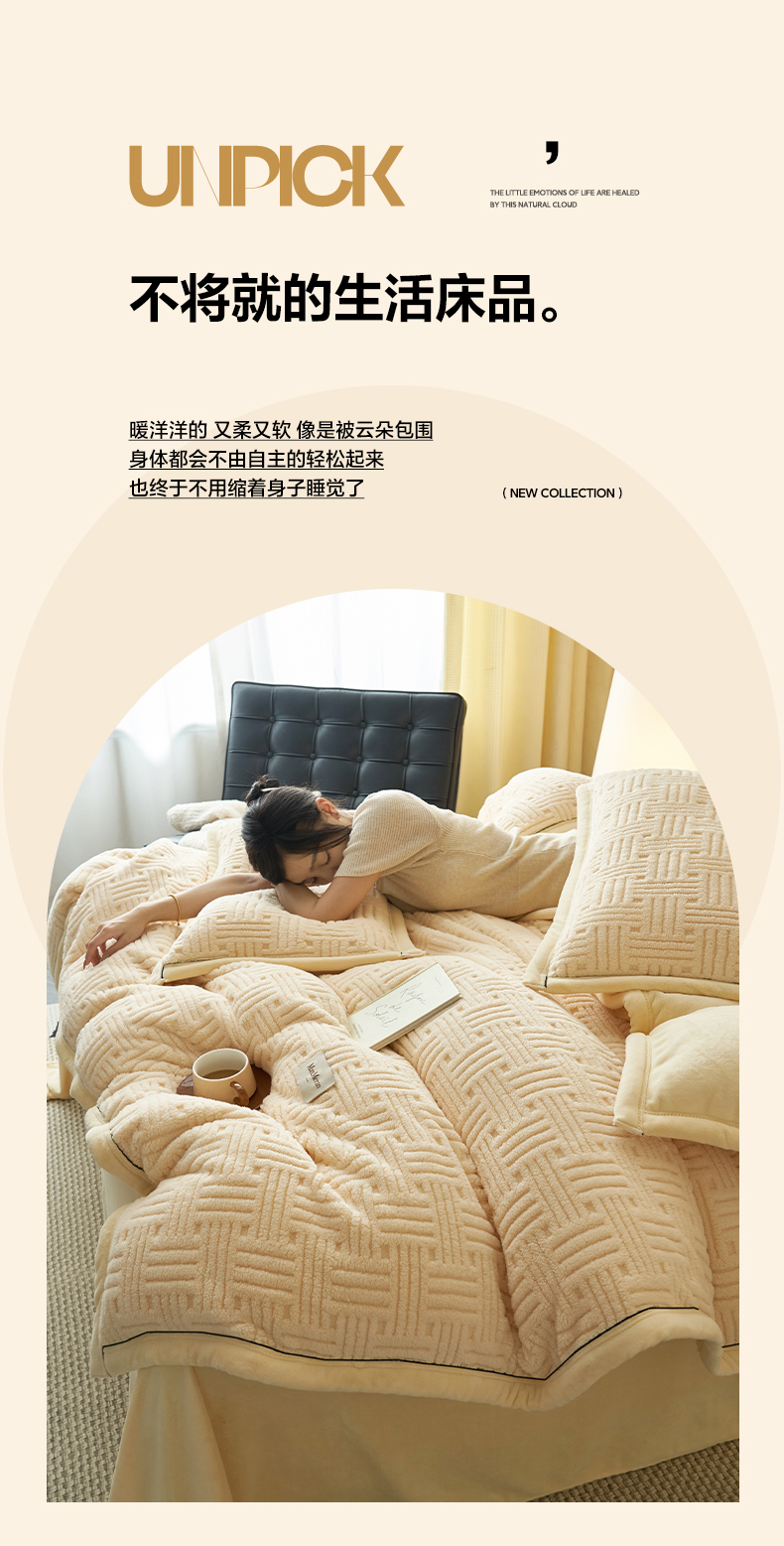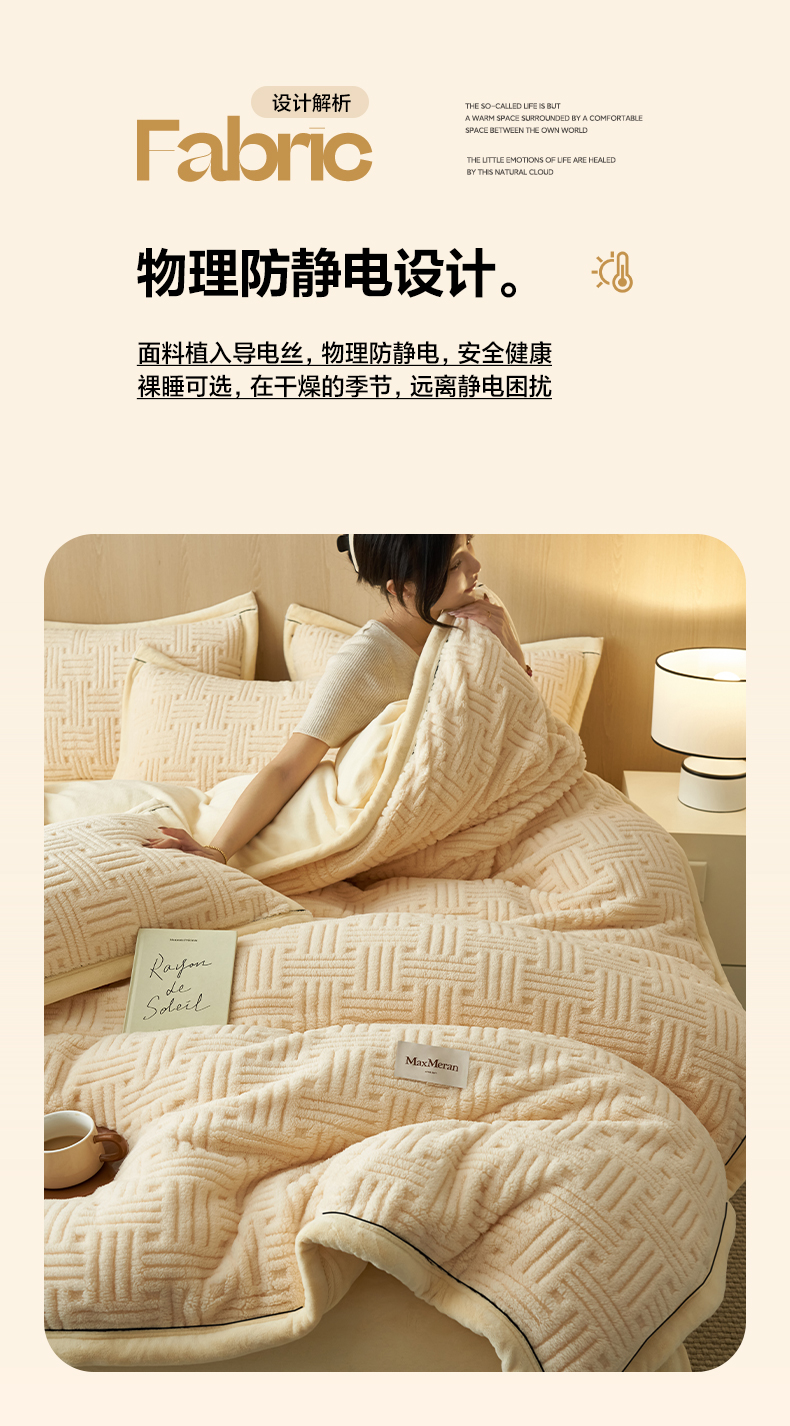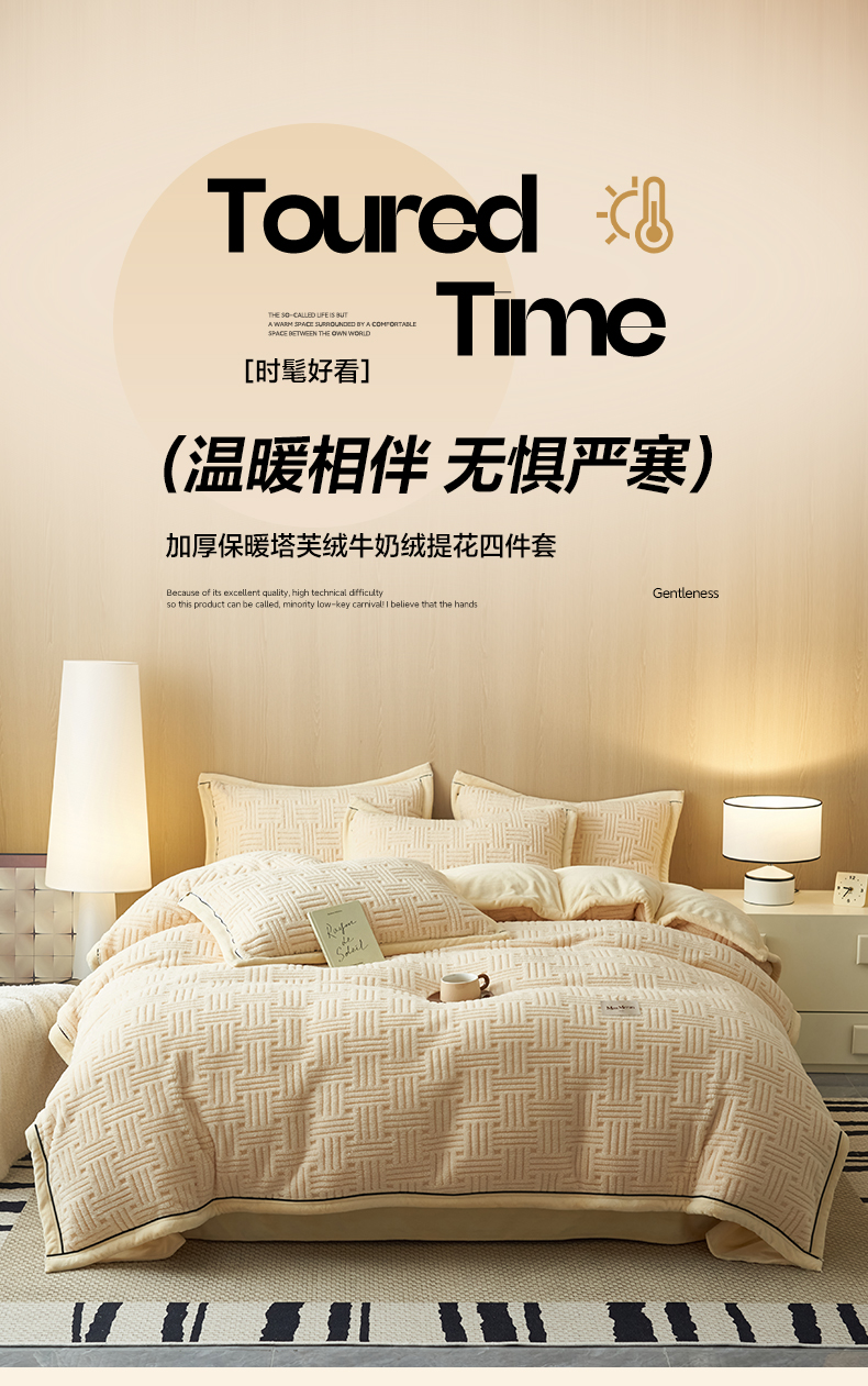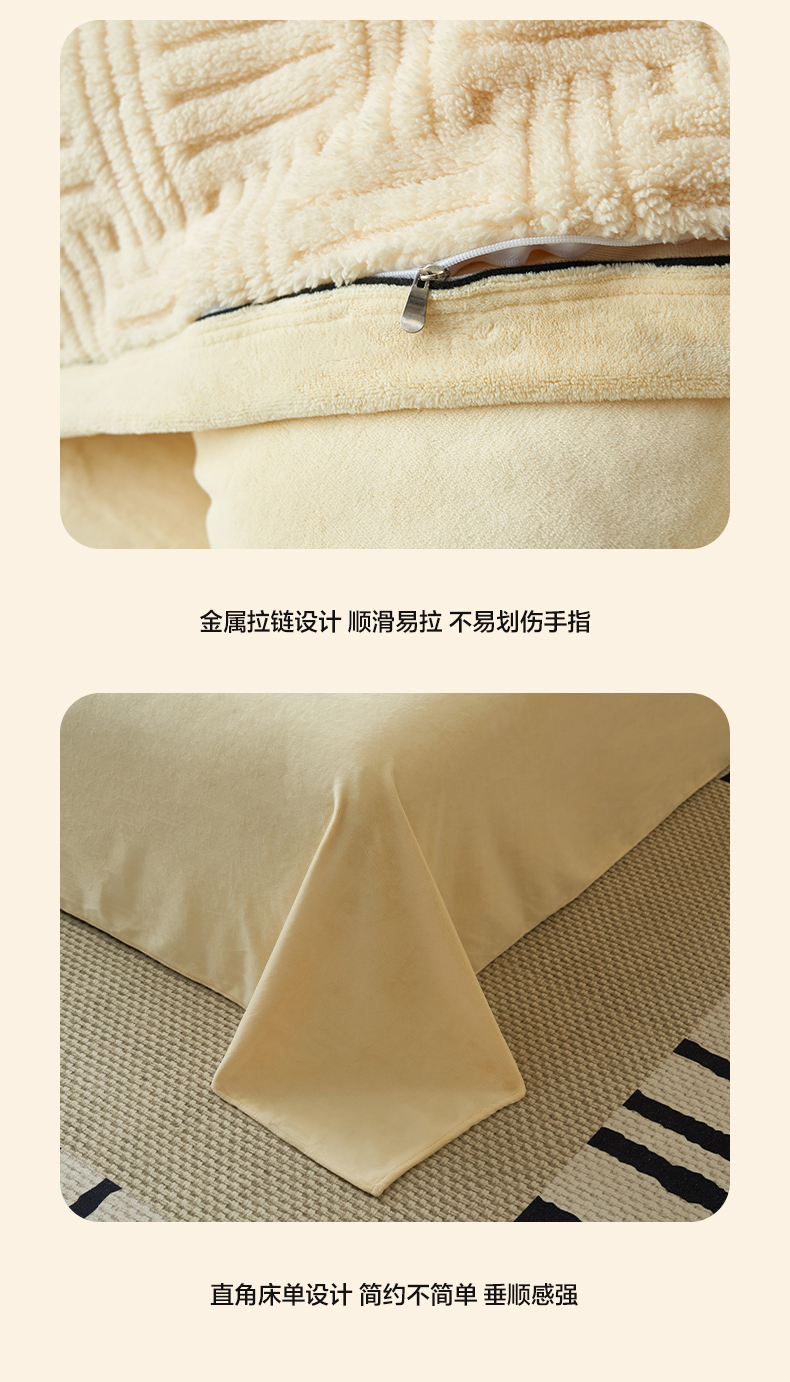当前位置: 91家纺网 > 商品网购 > 床品套件 > 四件套 > 牛奶绒四件套 > 晨曦家纺 2025新款230克加厚保暖塔芙绒牛奶绒四件套法兰绒 简爱-奶黄