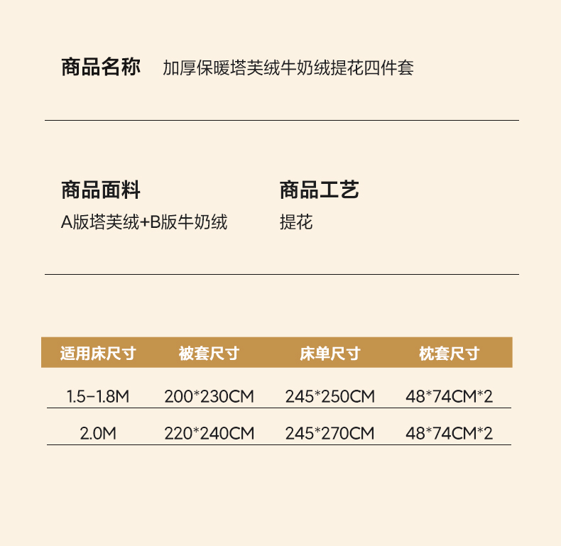 标准四件套(被套200*230cm) | ¥95.00 |