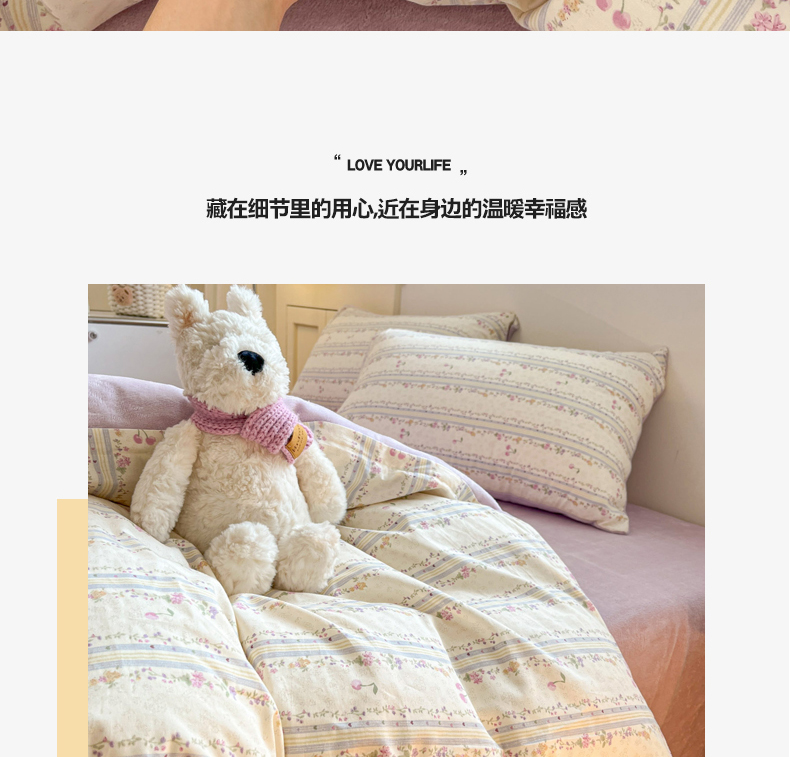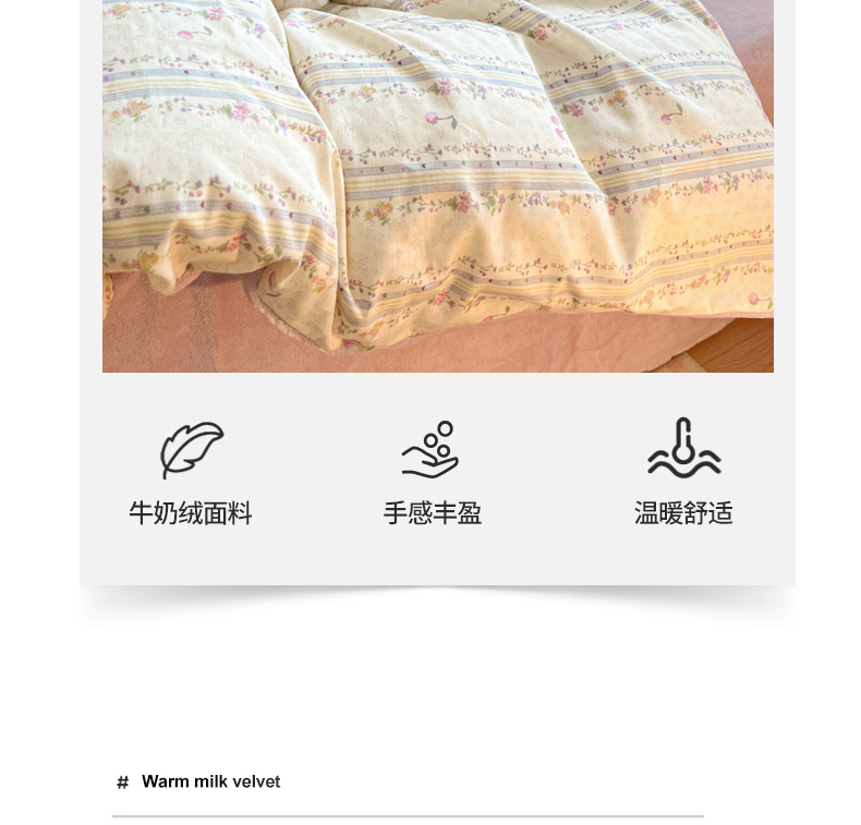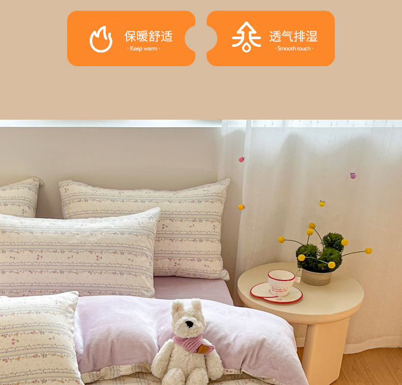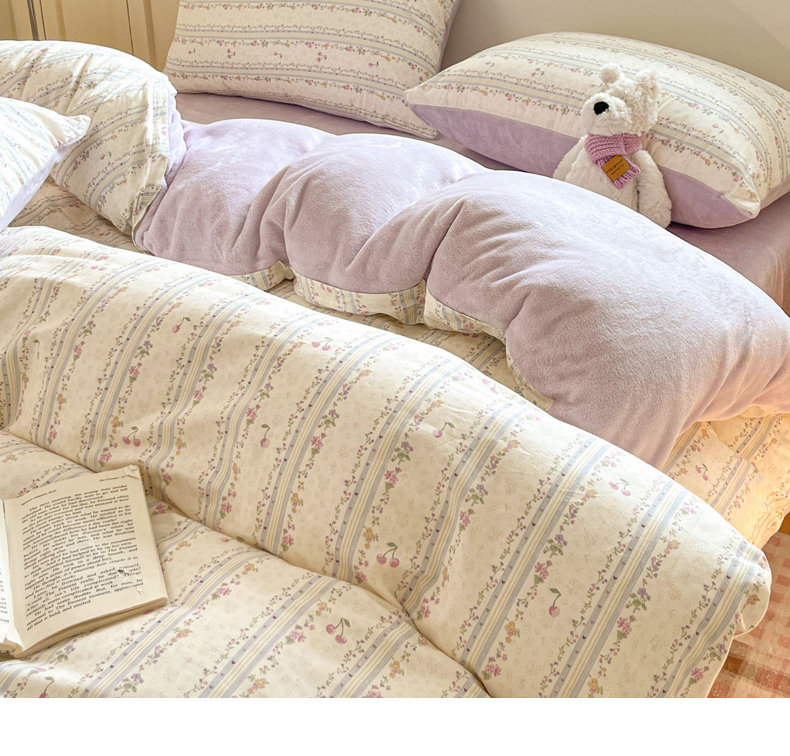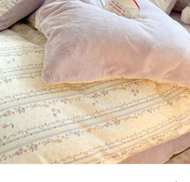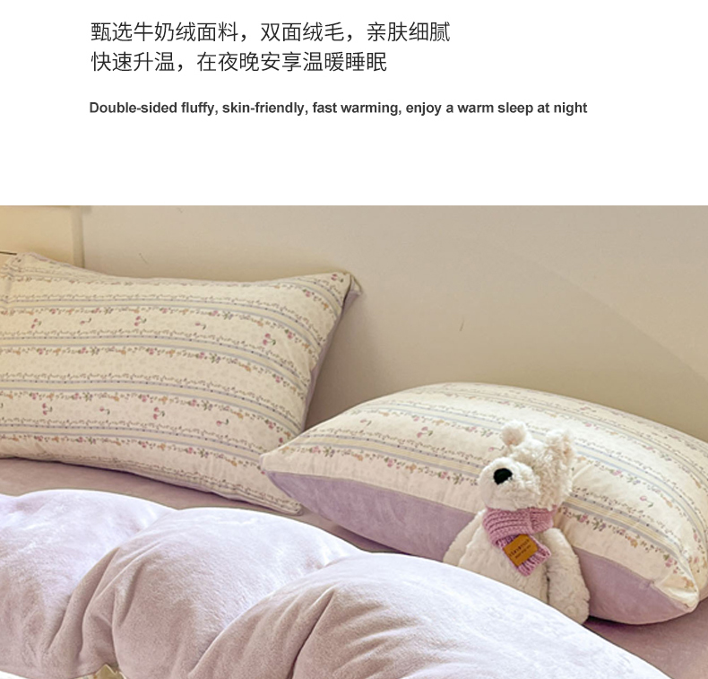 当前位置: 91家纺网 > 商品网购 > 床品套件 > 四件套 > 牛奶绒四件套 > 麦伦家居 2025秋冬新款多功能床品全棉+牛奶绒印花四件套 花季时光