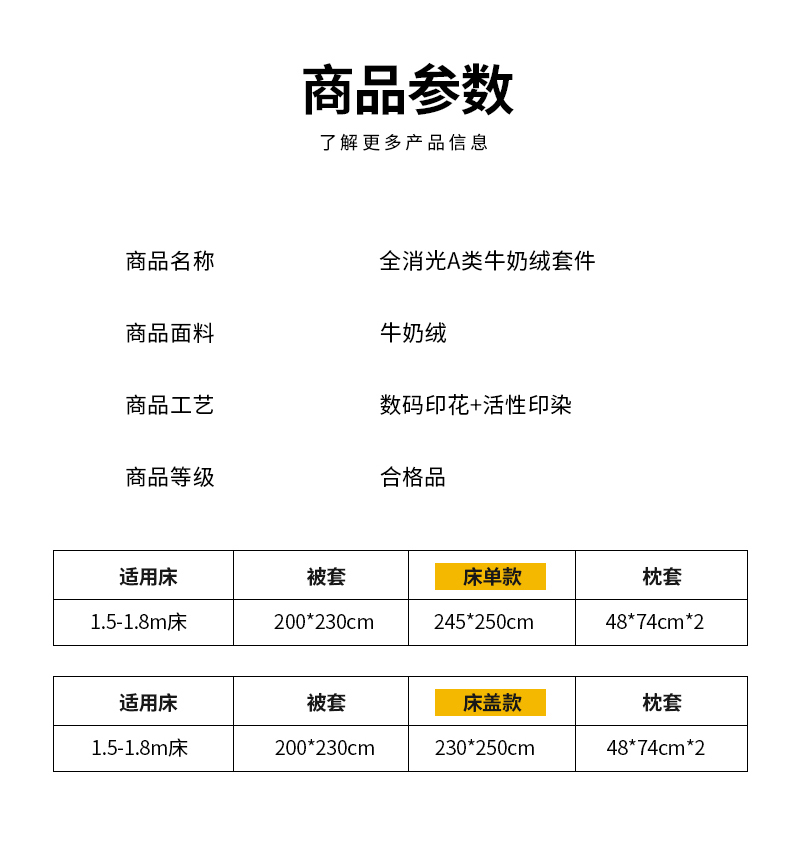 【床盖款】1.8米床被套 200*230cm 床盖230*250cm 枕套48*74cm*2
