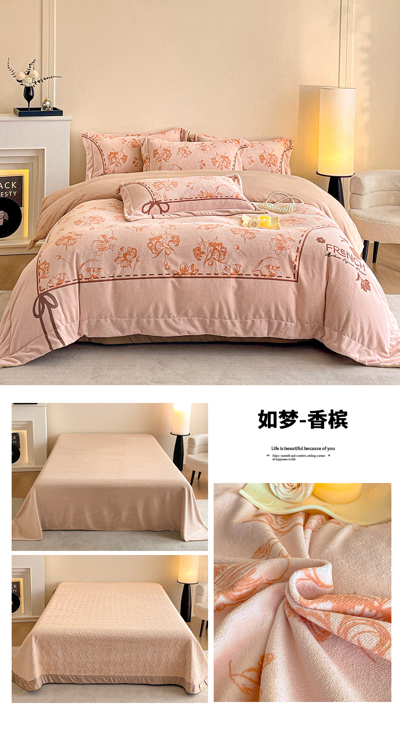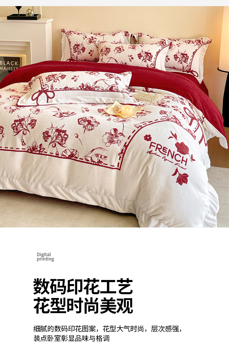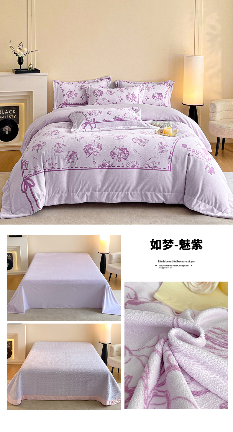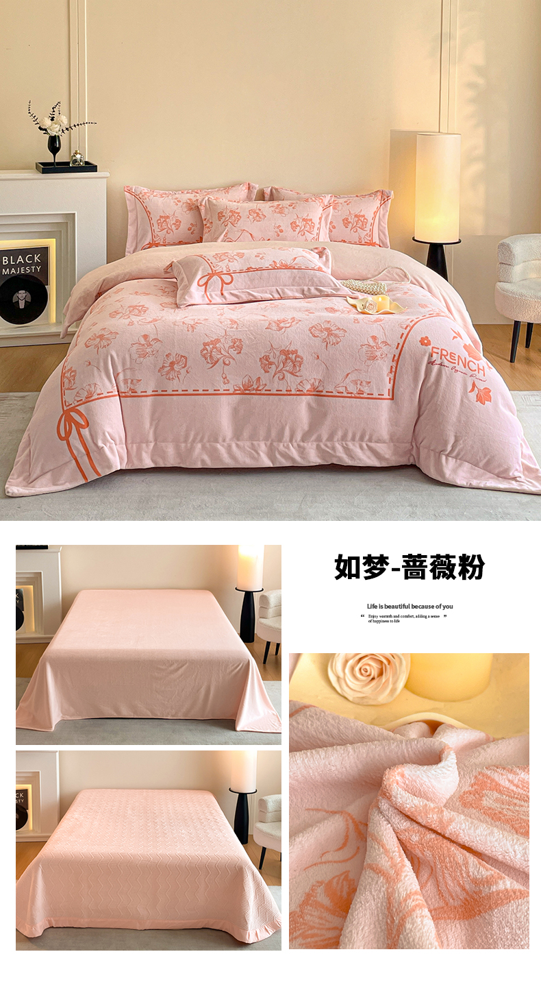 商品名称:(总)控价 2025新款 专版花型 全消光A类数码印花牛奶绒四件套床盖款-如梦