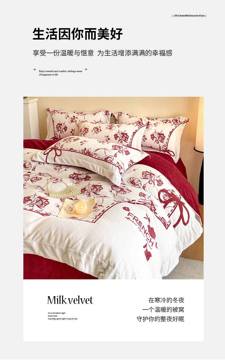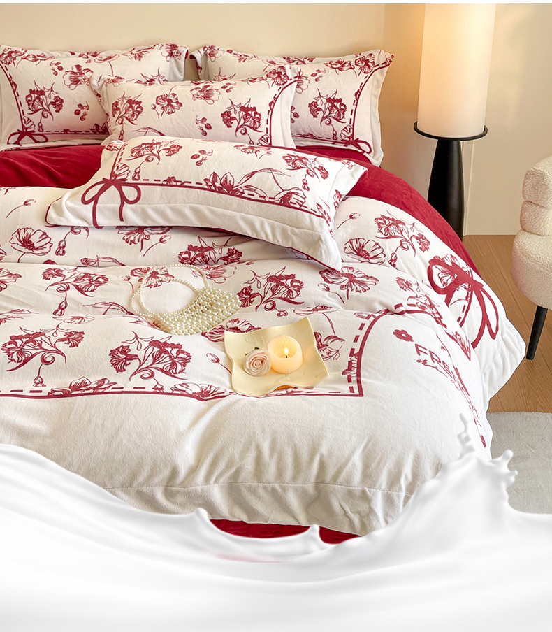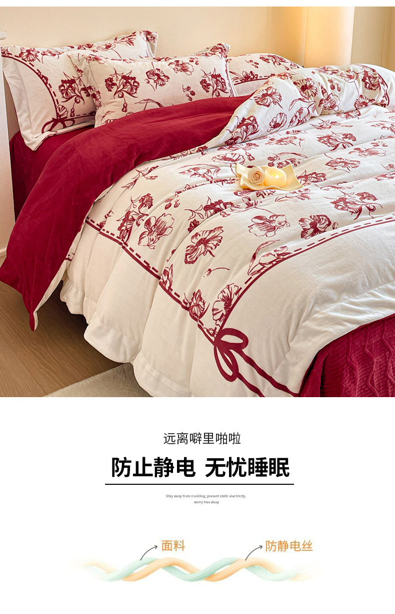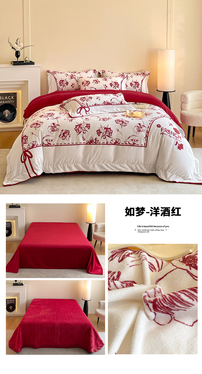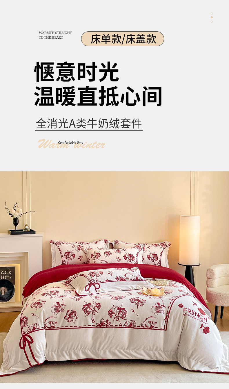 商品名称:(总)控价 2025新款 专版花型 全消光A类数码印花牛奶绒四件套床盖款-如梦