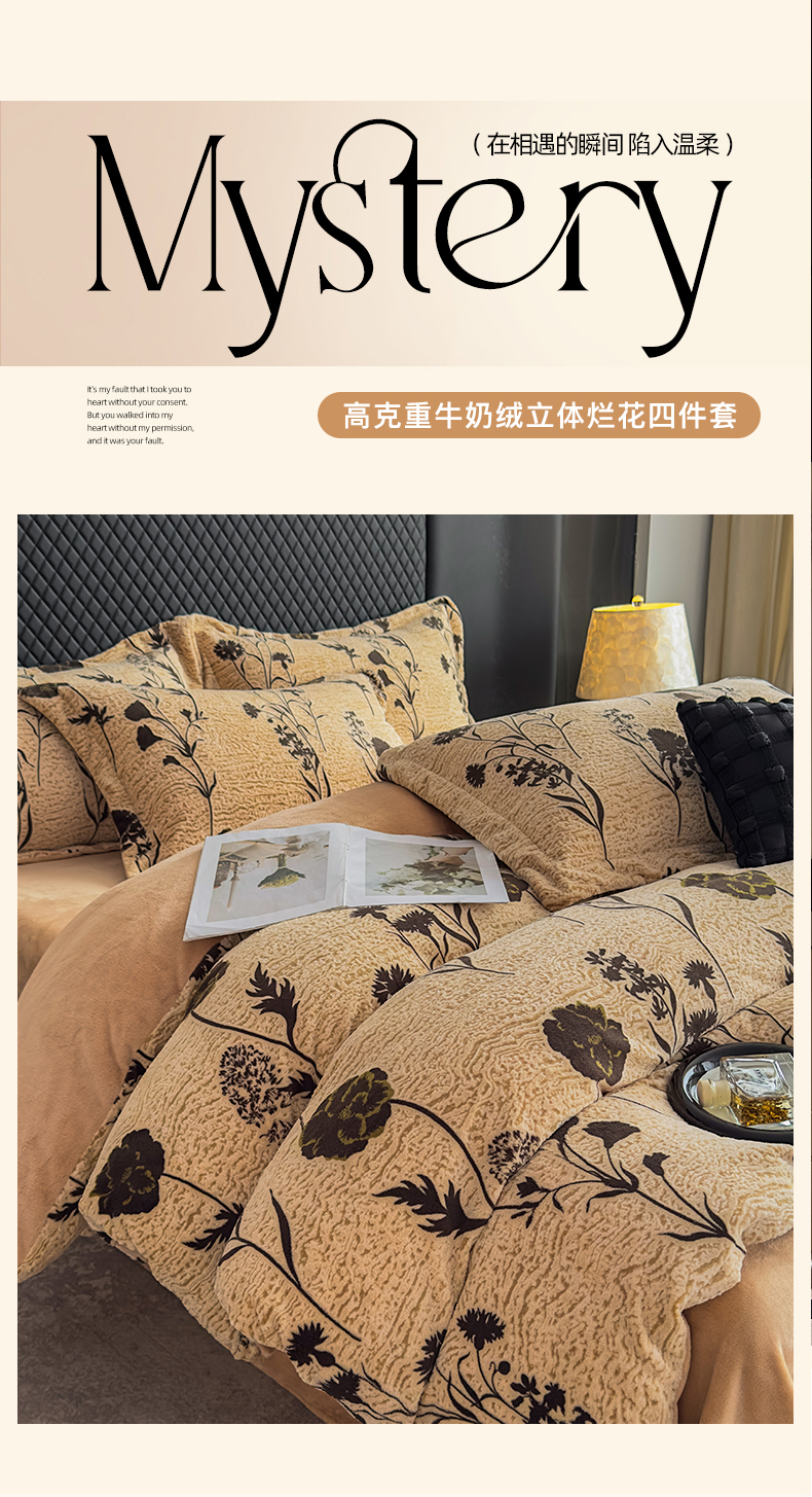 (总)金昱纺 2025新款高克重牛奶绒立体烂花四件套