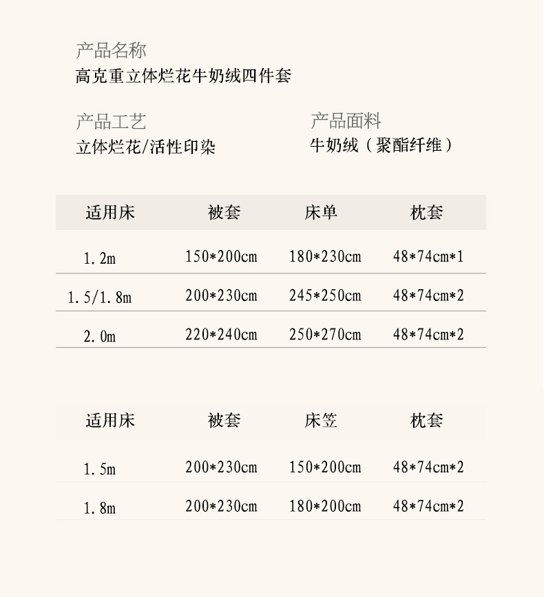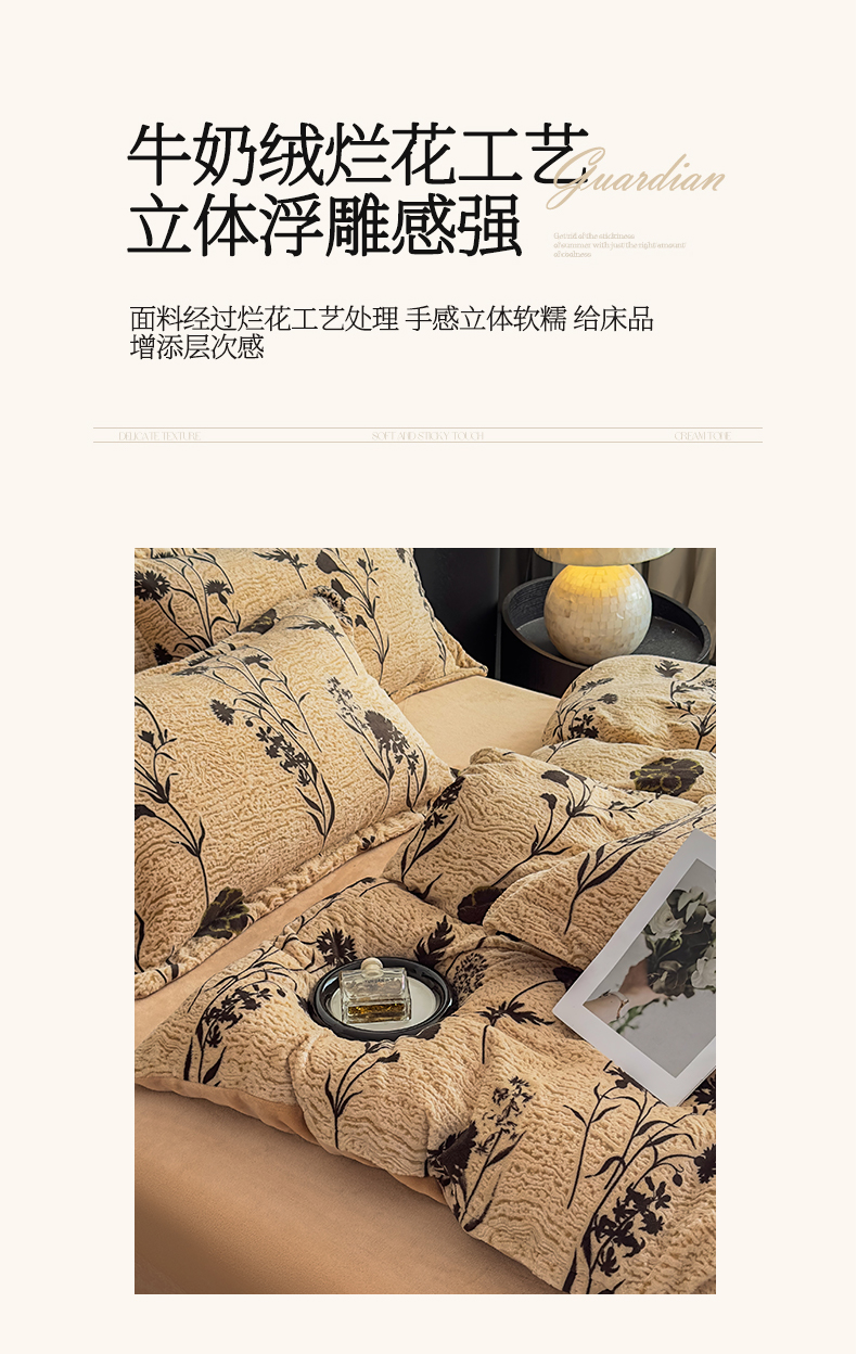 商品名称:(总)金昱纺 2025新款高克重牛奶绒立体烂花四件套