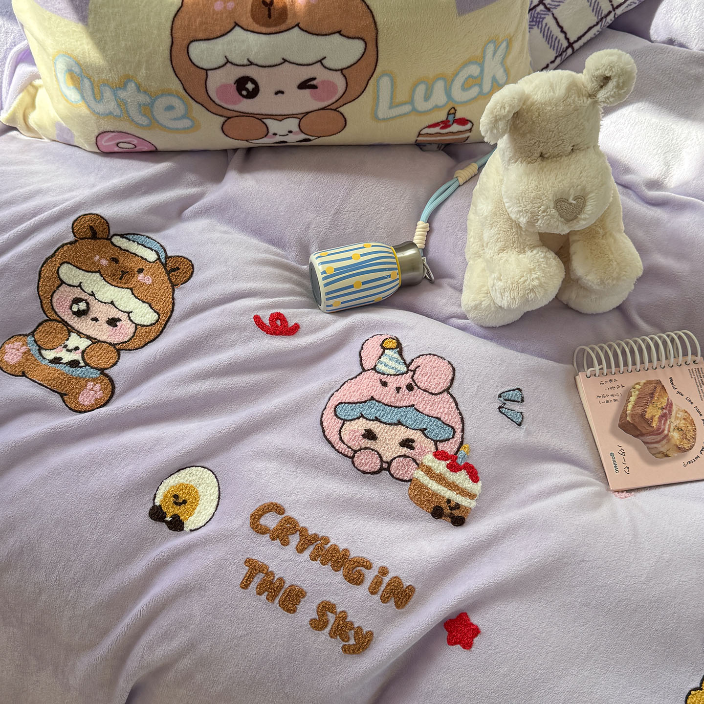 当前位置: 91家纺网 > 商品网购 > 床品套件 > 四件套 > 牛奶绒四件套 > 柚子YOUTH 2025新款加厚牛奶绒卡通毛巾绣四件套-卡通三小只 卡通三小只-歌唱家