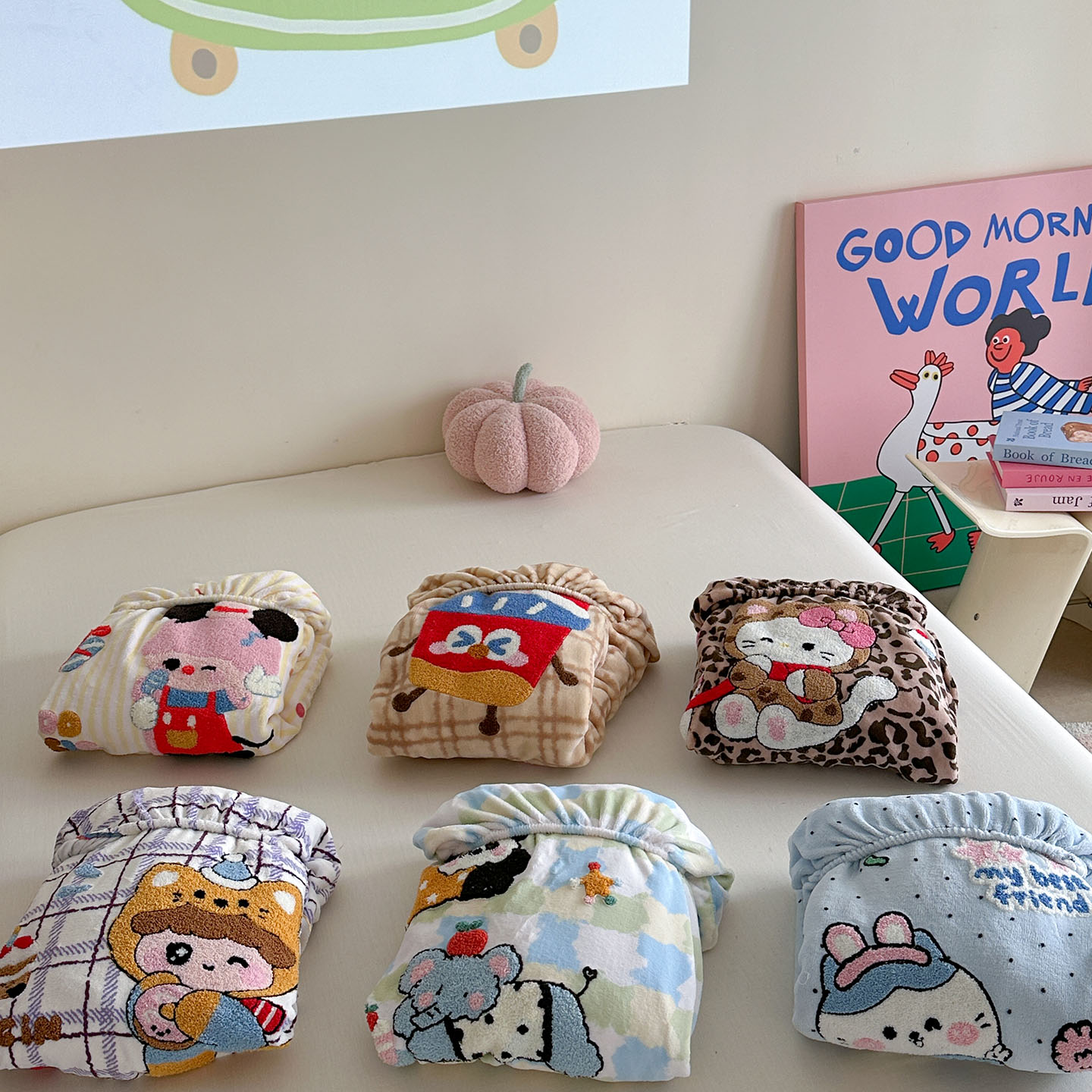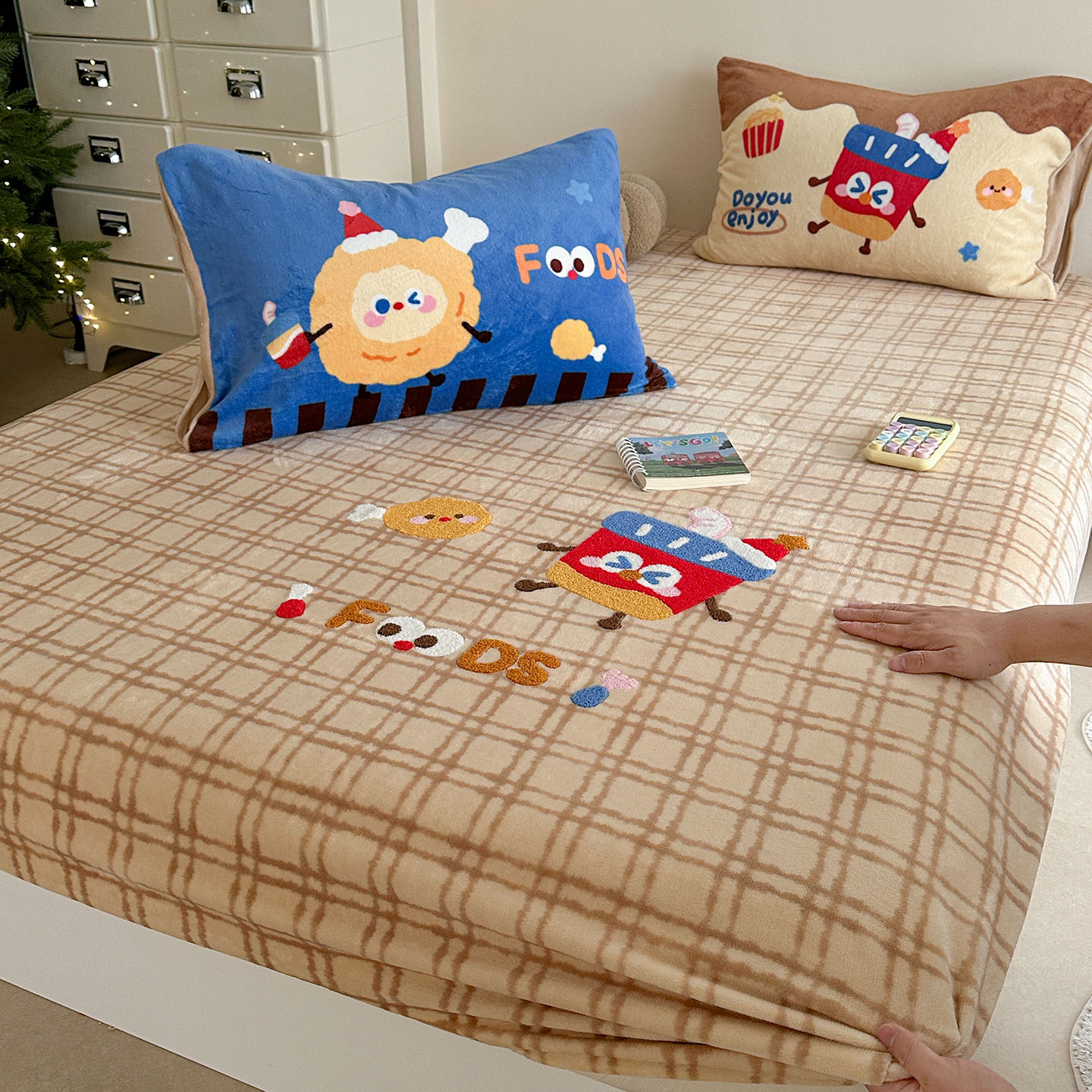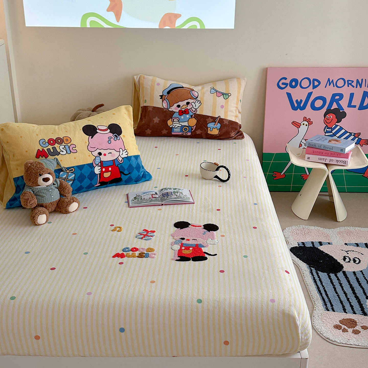 柚子YOUTH 2025新款加厚牛奶绒卡通毛巾绣床笠三件套 歌唱家
