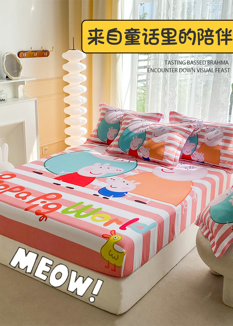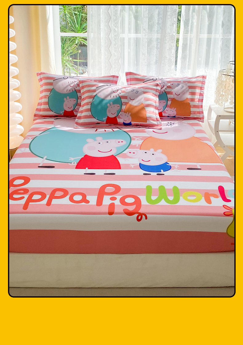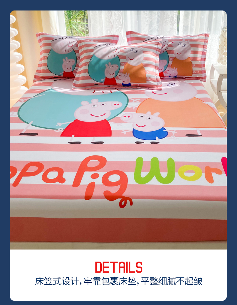 • 91家纺网 家纺一手货源 找家纺 一电 2024新款卡通床单床笠棕垫床套防尘罩席床垫保护套卡通儿童上下床床单床笠-第三批 佩奇一家人