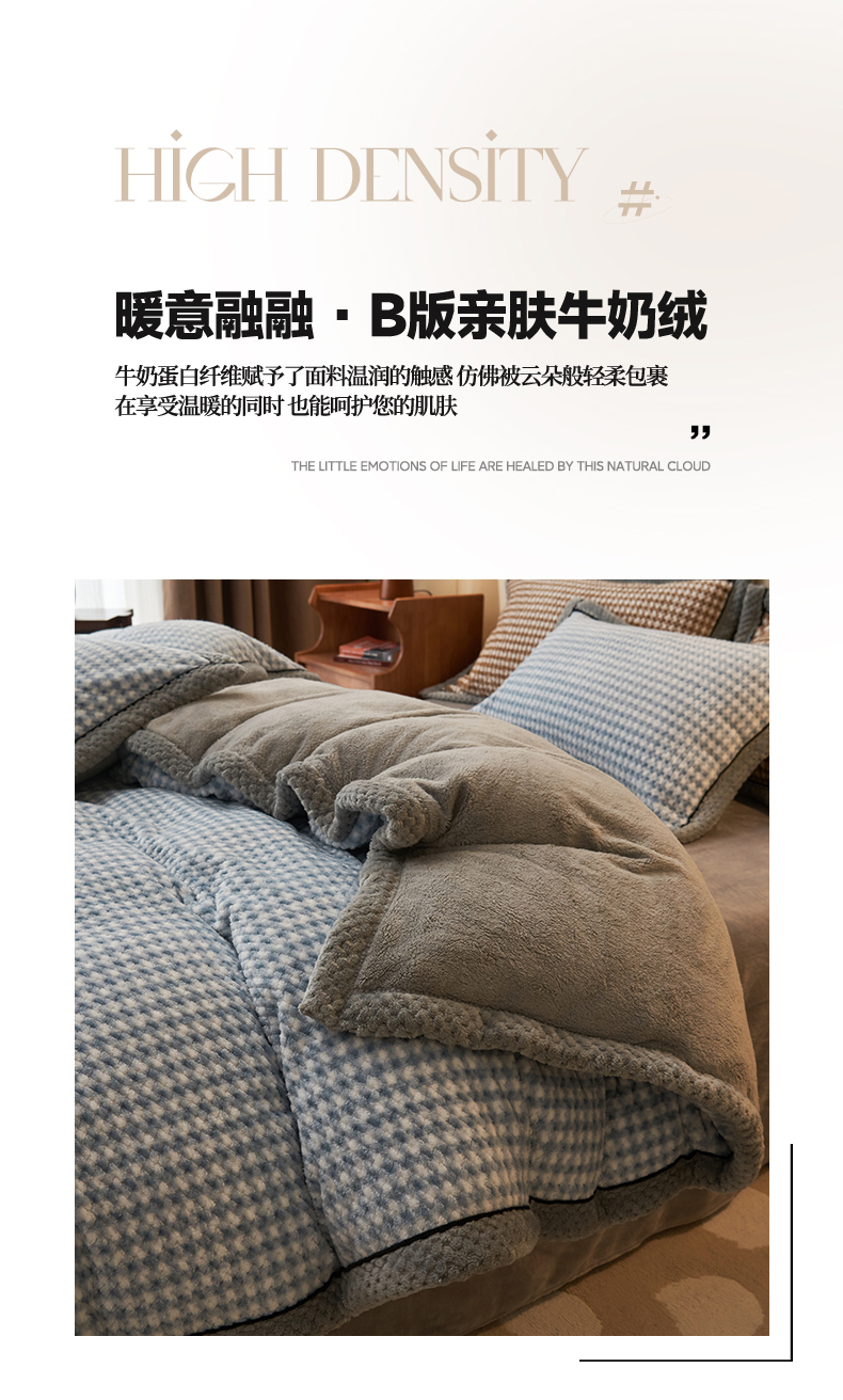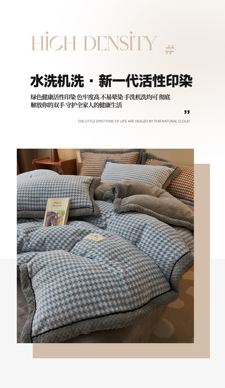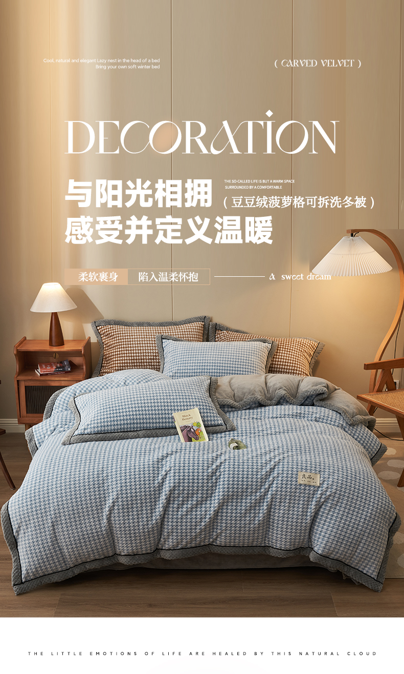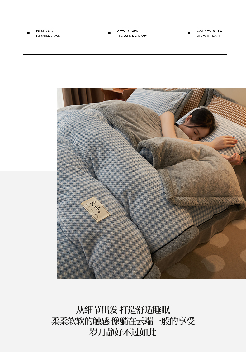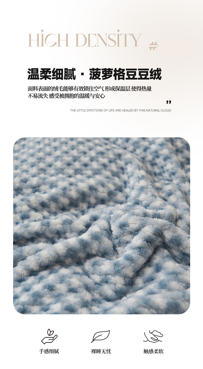 早晨家纺 2025新款豆豆款菠萝格-可拆卸冬被 豆豆绒-小格蓝
