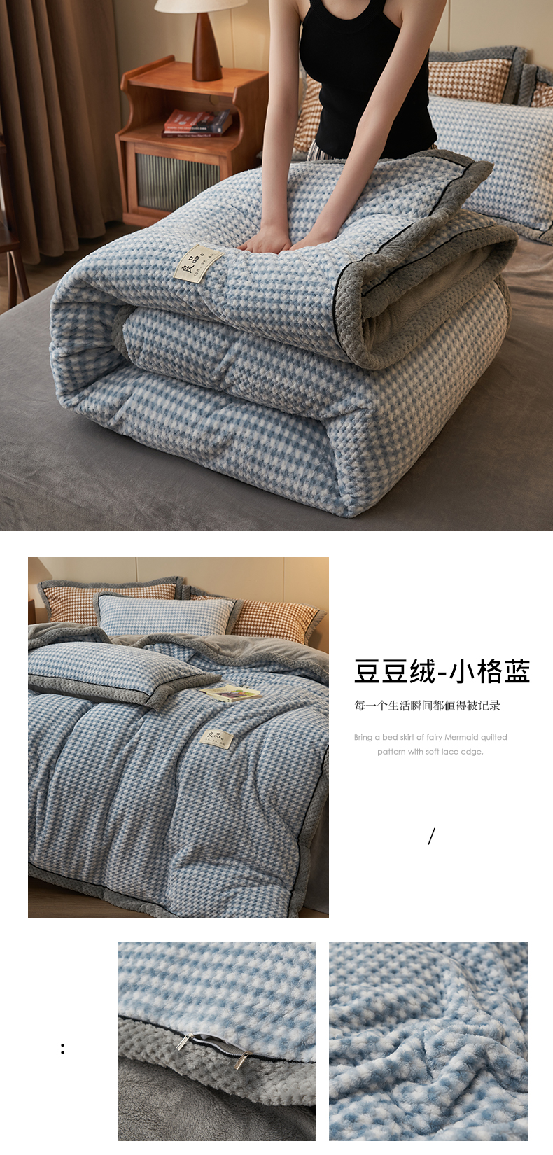 • 91家纺网 家纺一手货源 找家纺 早晨家纺 2025新款豆豆款菠萝格-可拆卸冬被 豆豆绒-小格蓝