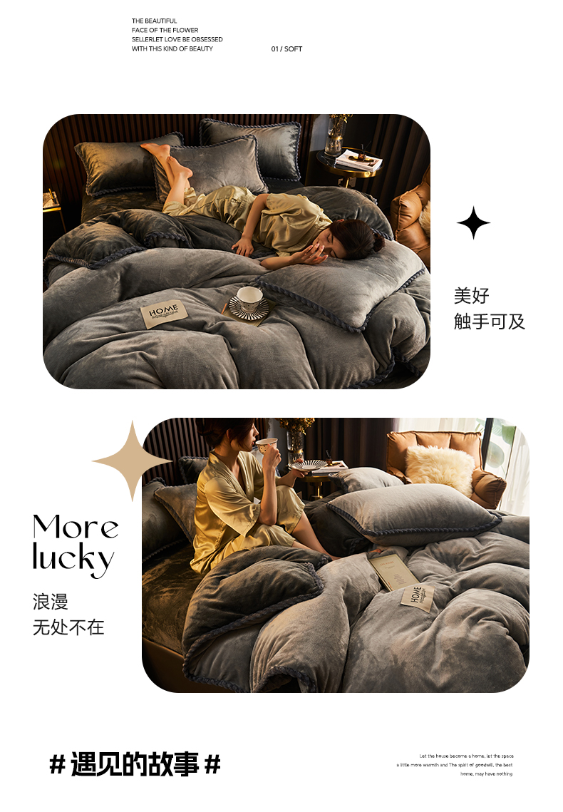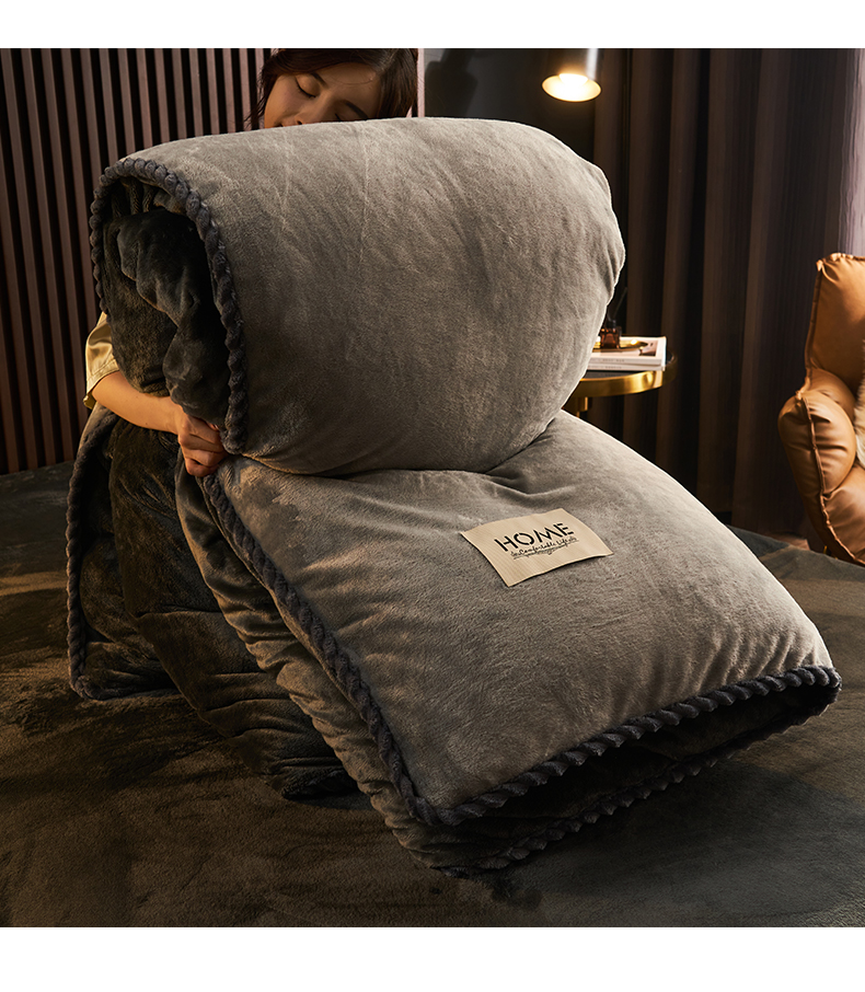 • 91家纺网 家纺一手货源 找家纺 早晨家纺 2025新款黑金牛奶绒纯色-单被套系列风格2 黑金-浅灰