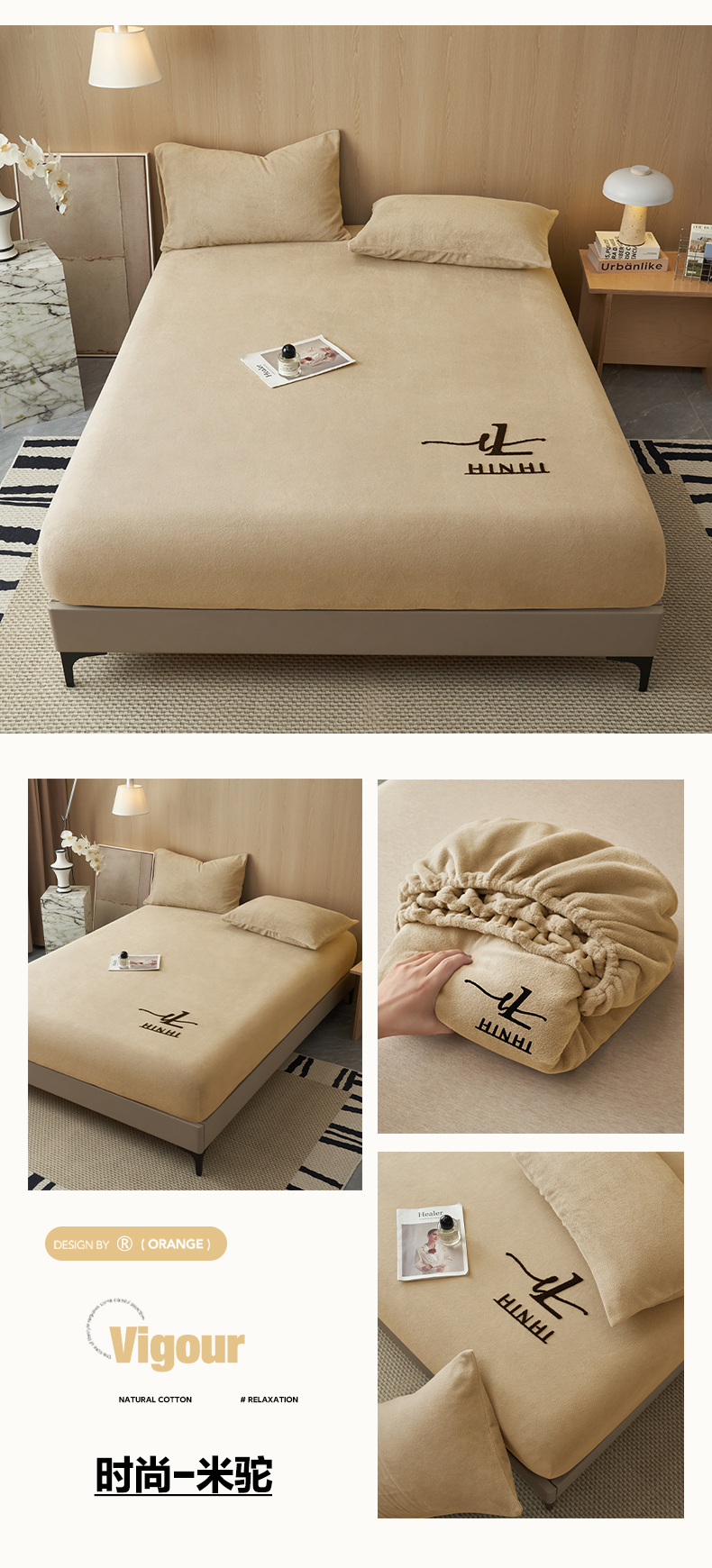 • 91家纺网 家纺一手货源 找家纺 早晨家纺 2025新款牛奶绒纯色毛巾绣暖绒床笠 时尚-奶茶咖