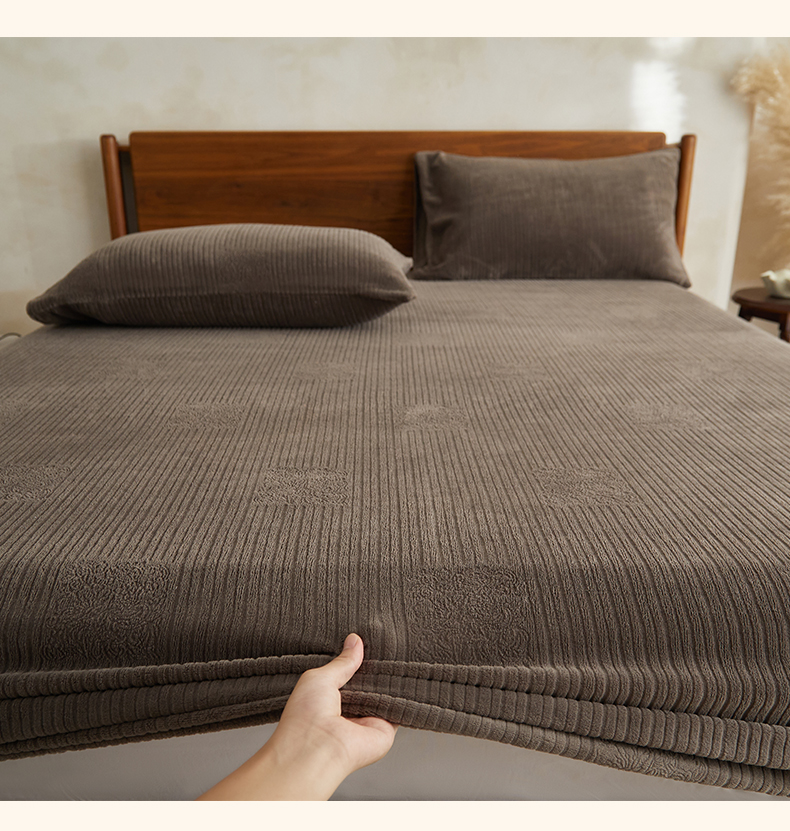 • 91家纺网 家纺一手货源 找家纺 早晨家纺 2025新款红金龙纯色烂花牛奶绒床笠 恬憩-米驼