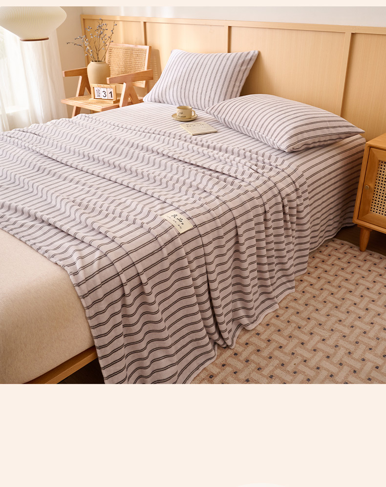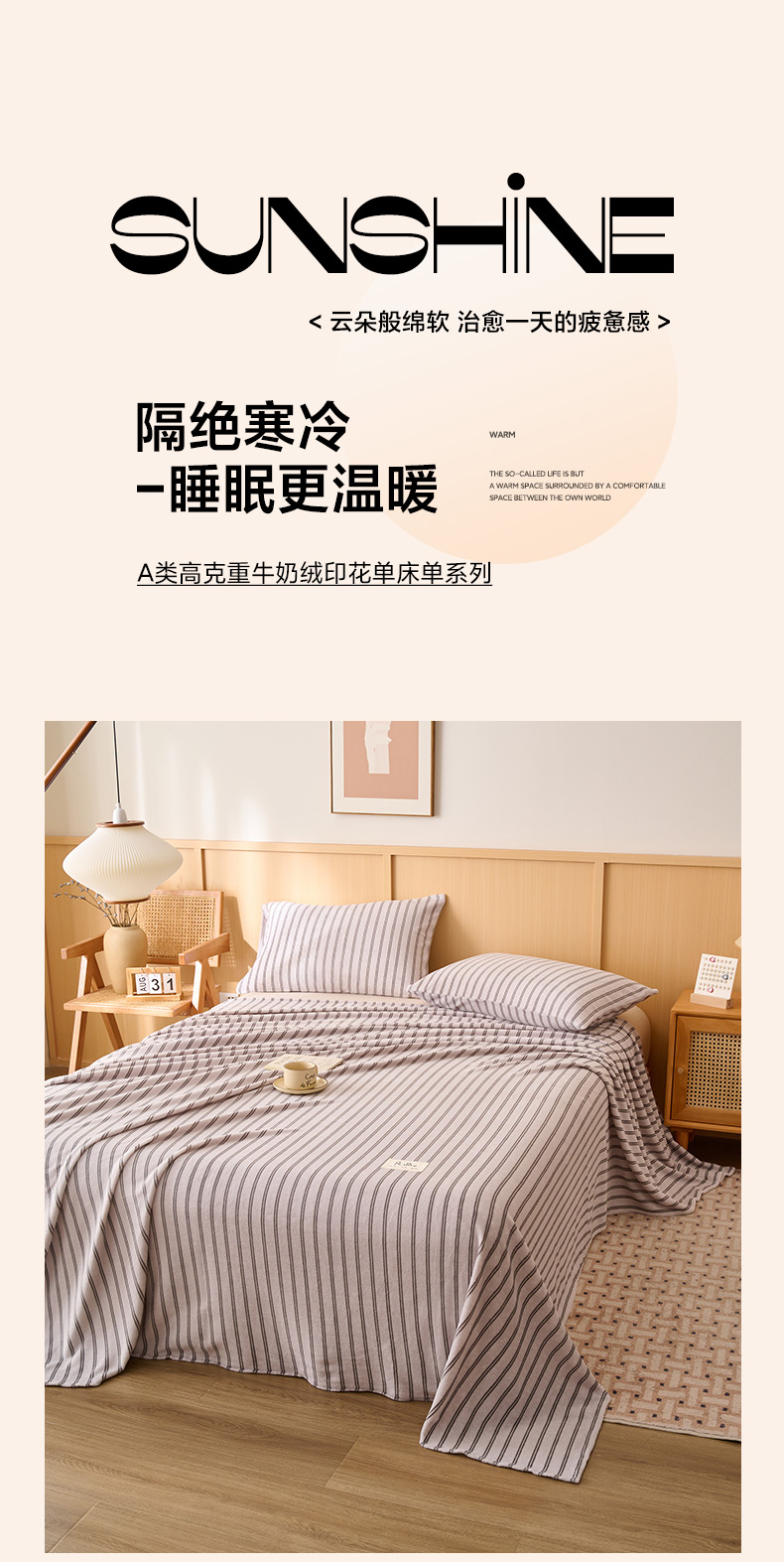 早晨家纺 2025新款野牧款高克重牛奶绒印花单床单系列 野牧-竖条白