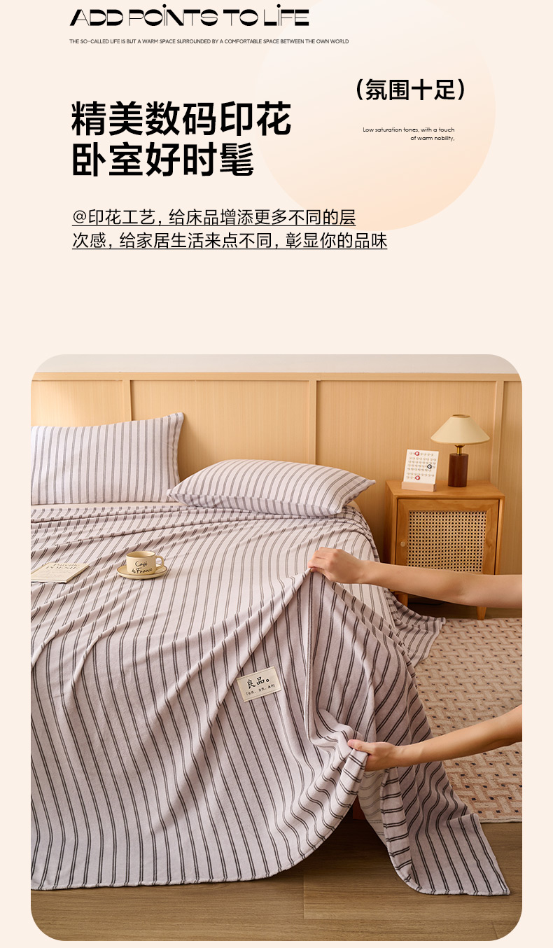 • 91家纺网 家纺一手货源 找家纺 早晨家纺 2025新款野牧款高克重牛奶绒印花单床单系列 野牧-竖条白