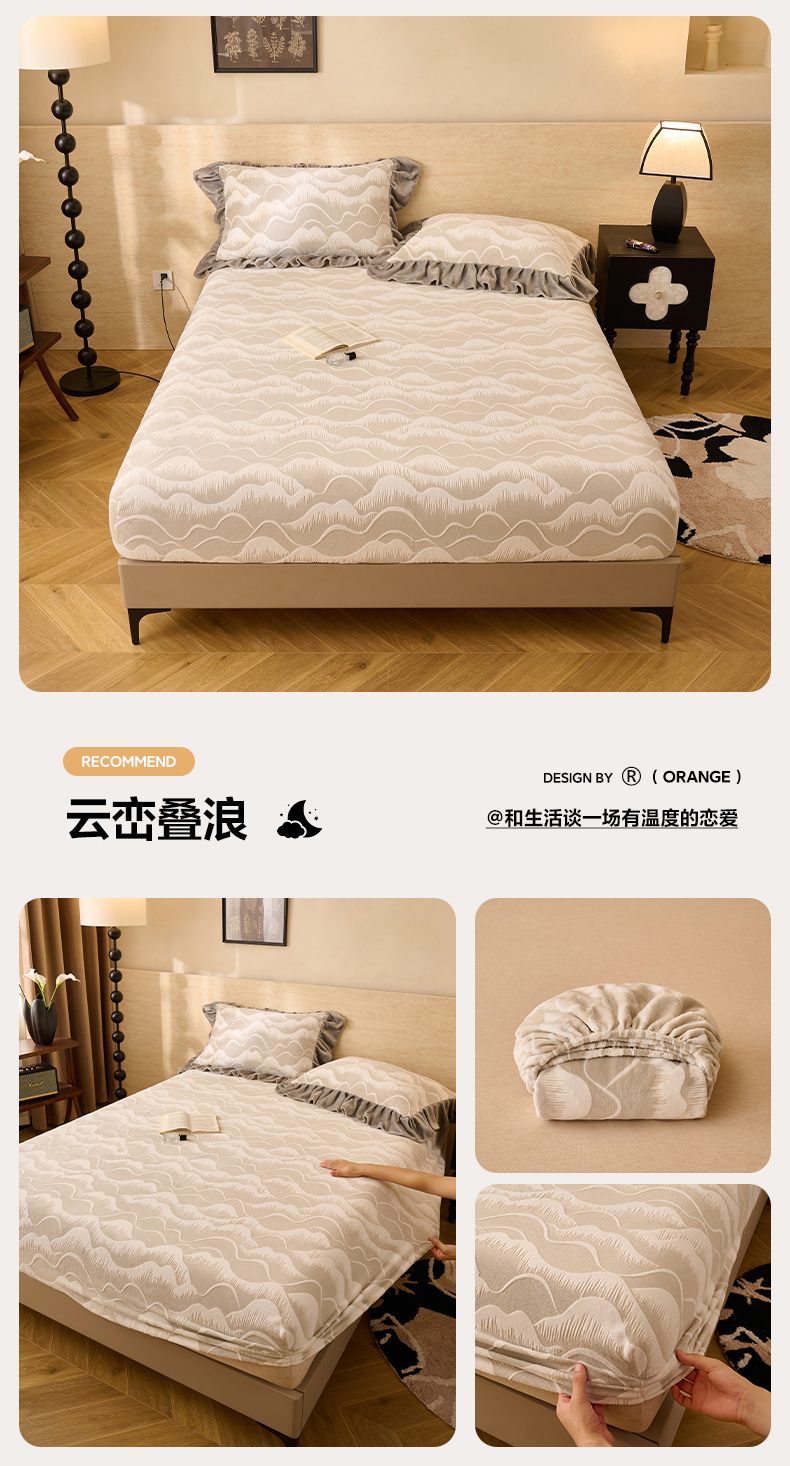 • 91家纺网 家纺一手货源 找家纺 早晨家纺 2025新款高克重牛奶绒烂花单床笠 棕叶雅庭