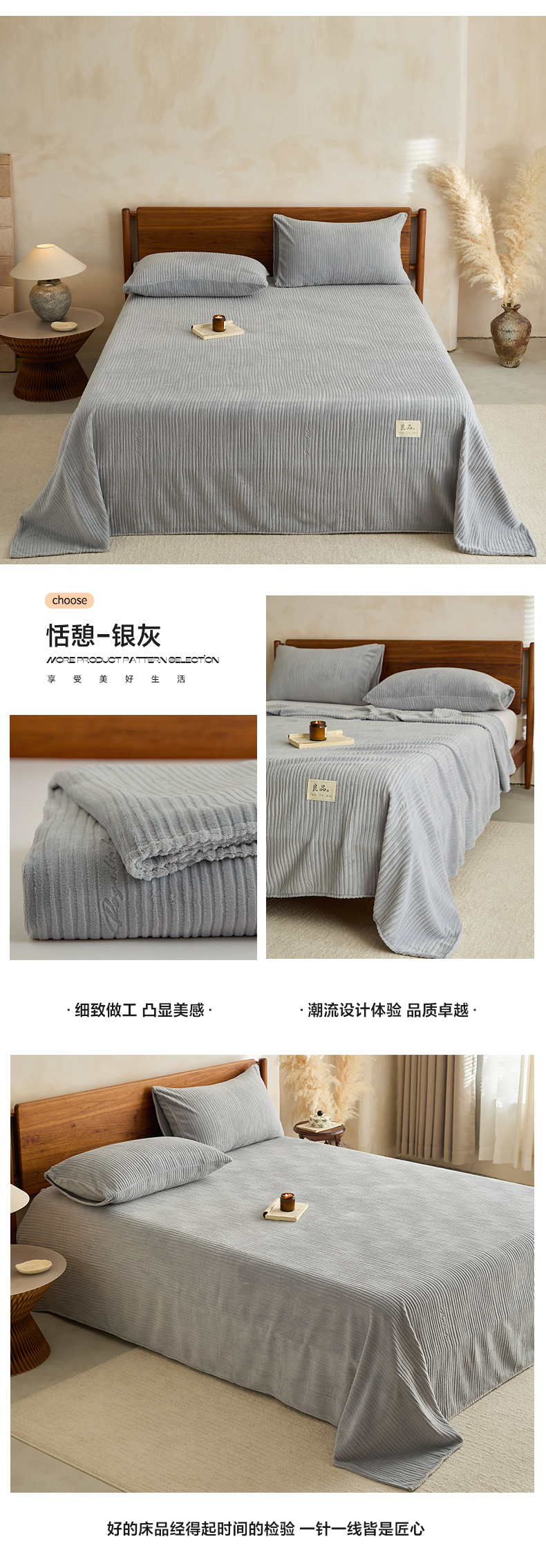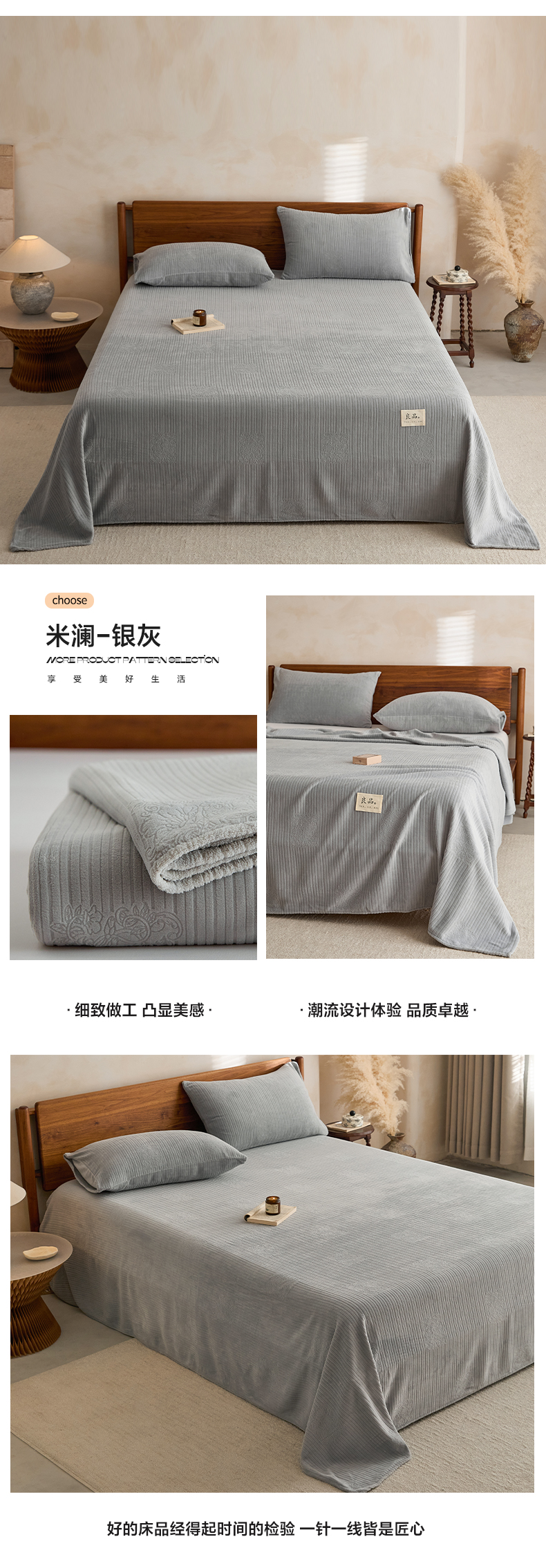 早晨家纺 2025新款红金龙纯色烂花牛奶绒床单 米澜-银灰