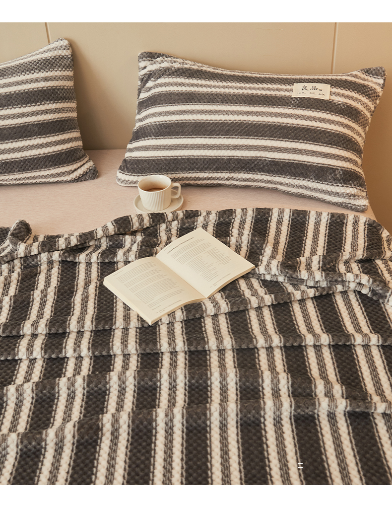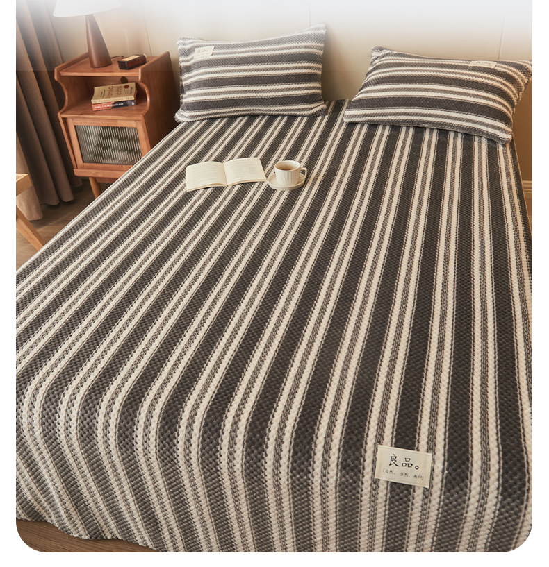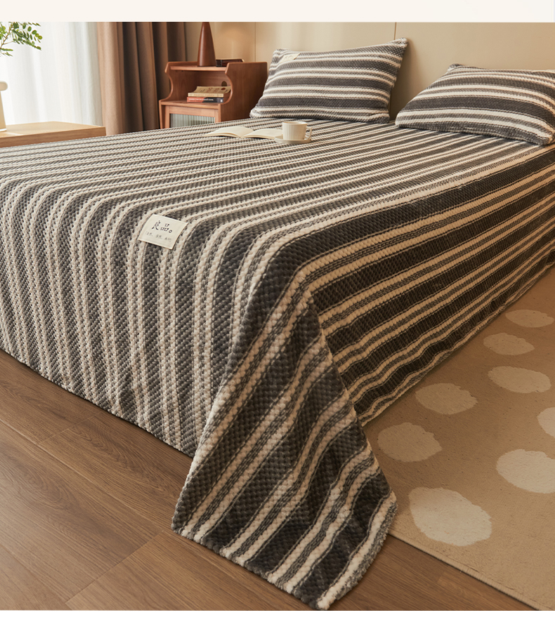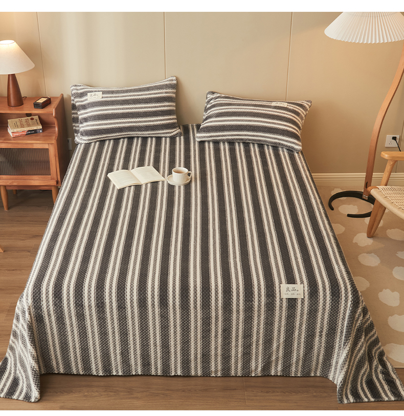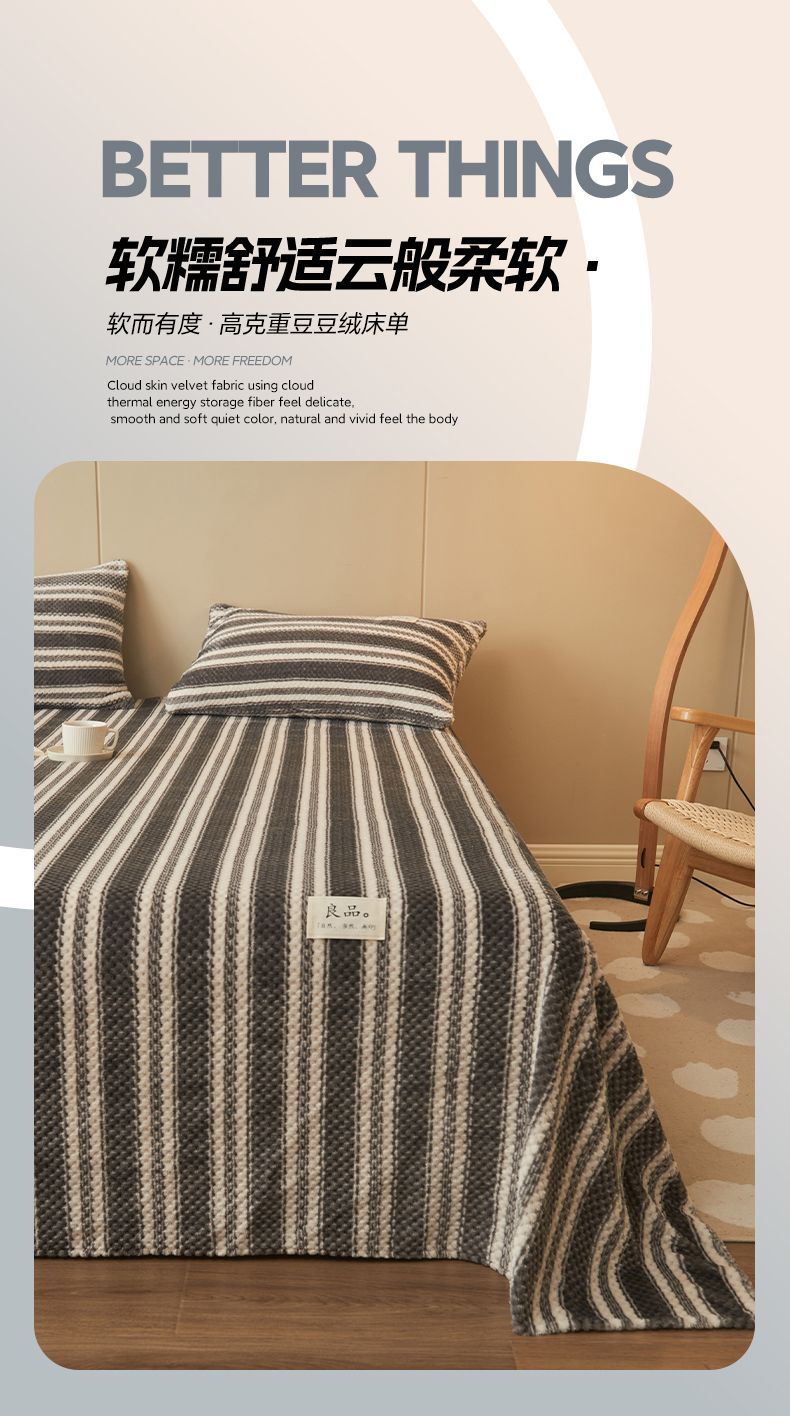 商品名称:早晨家纺 2025新款豆豆款高克重牛奶绒菠萝格无印风床单 豆豆绒-灰条