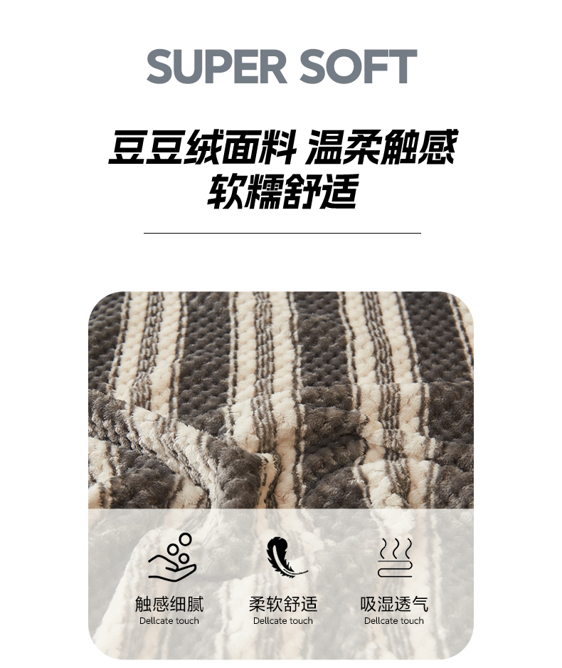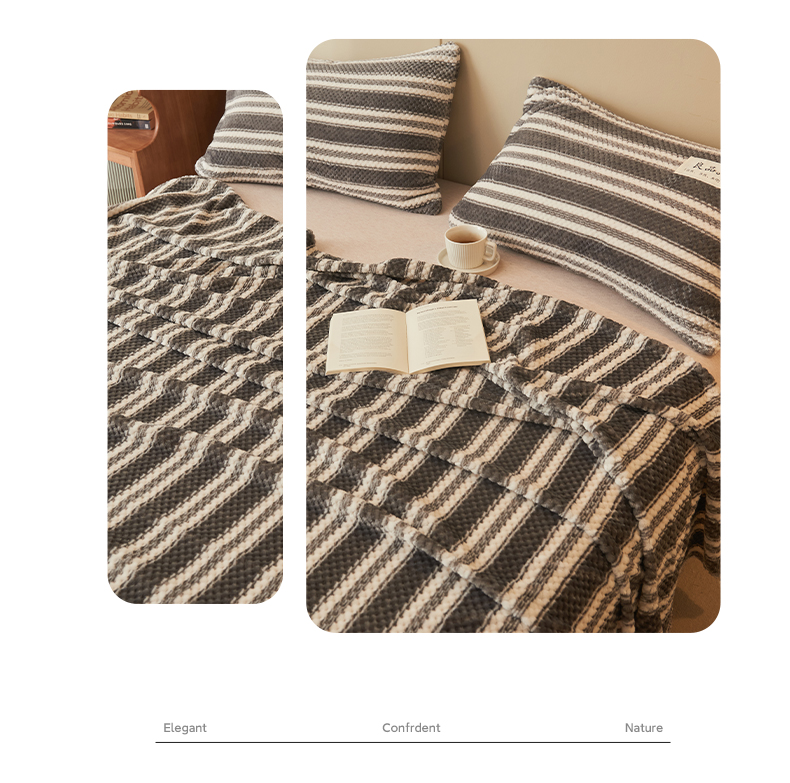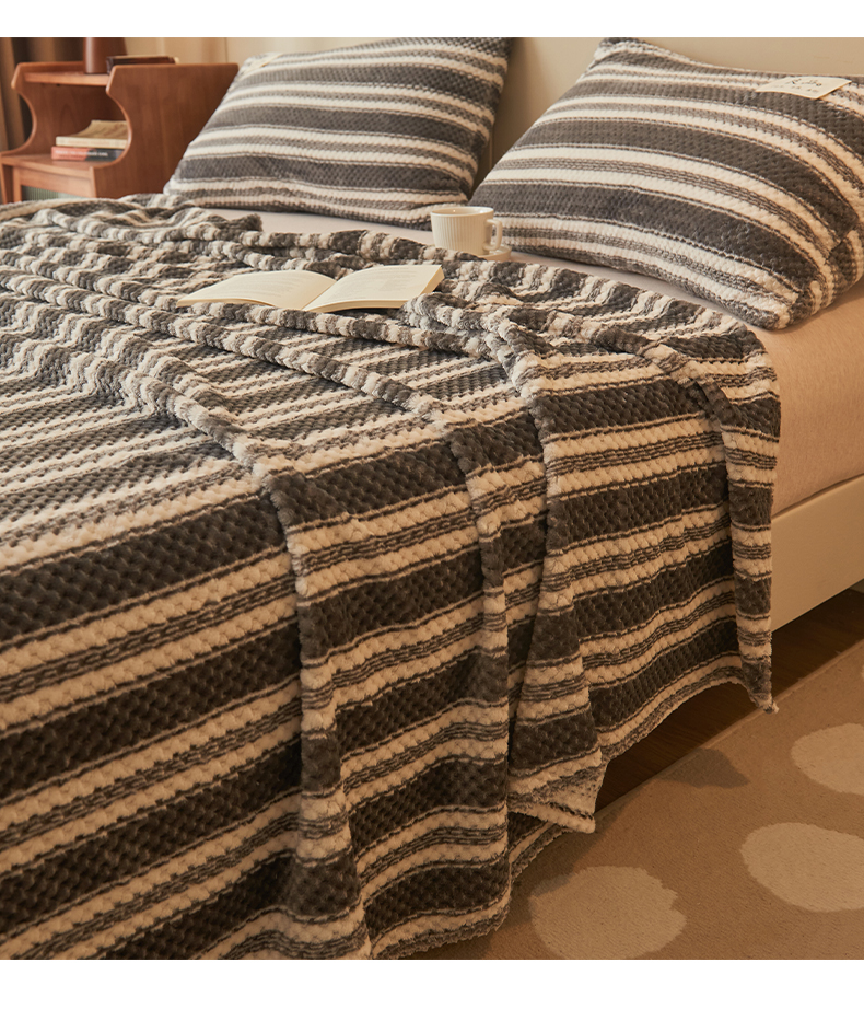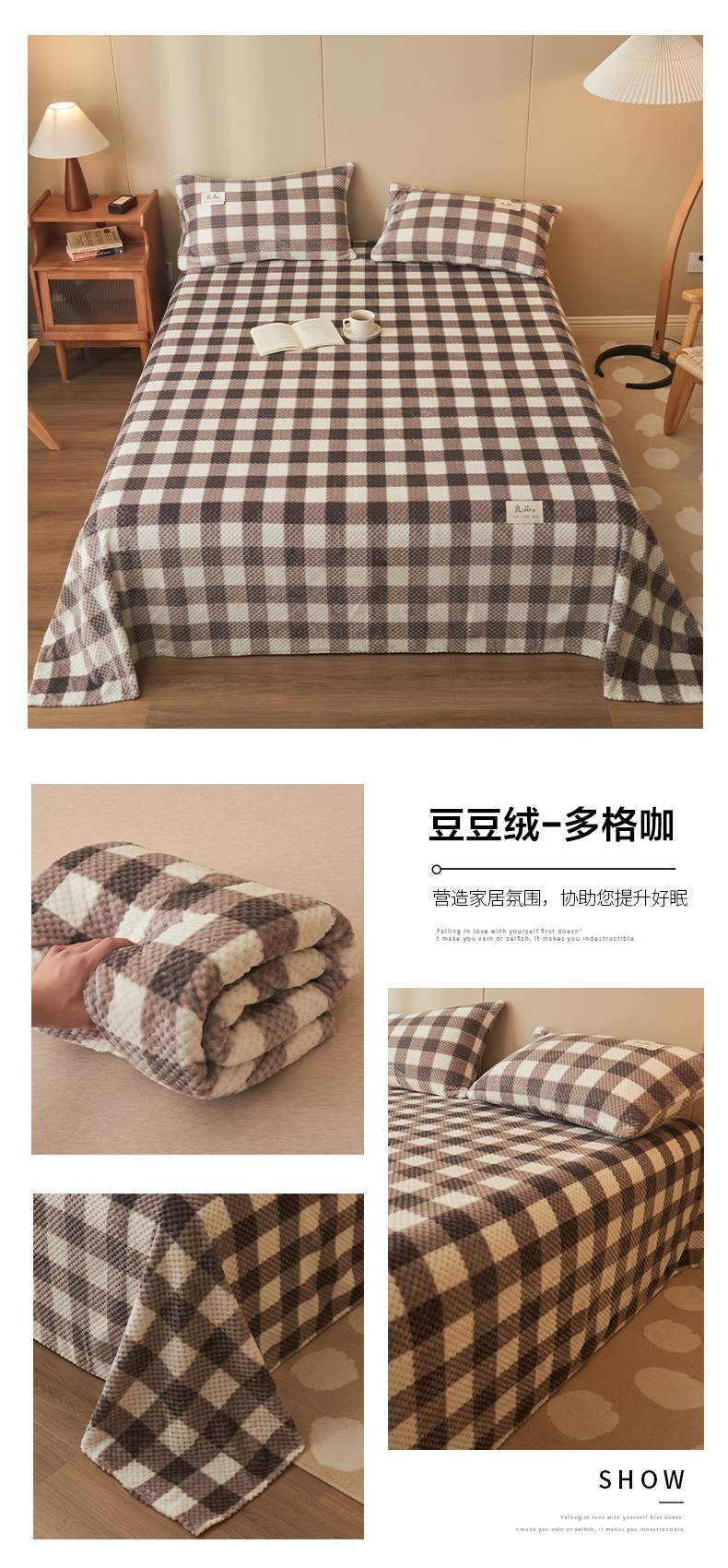 商品名称:早晨家纺 2025新款豆豆款高克重牛奶绒菠萝格无印风床单 豆豆绒-灰条