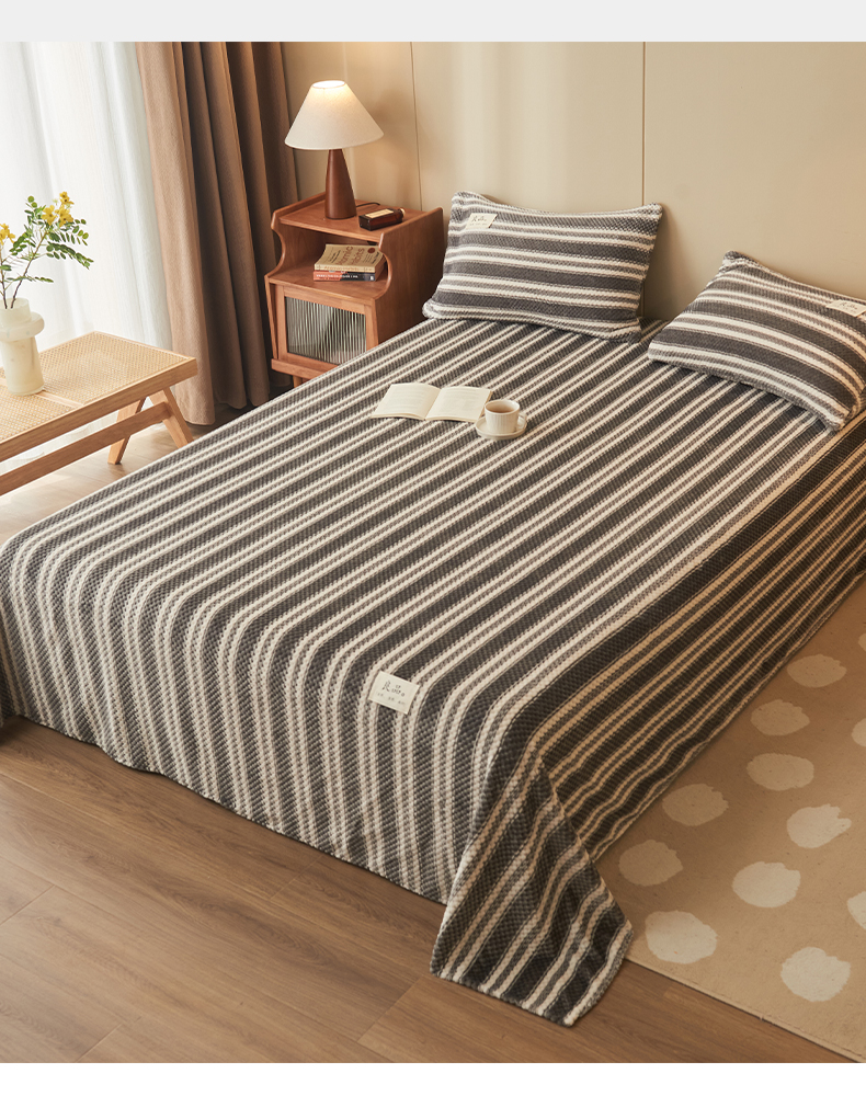 早晨家纺 2025新款豆豆款高克重牛奶绒菠萝格无印风床单 豆豆绒-灰条