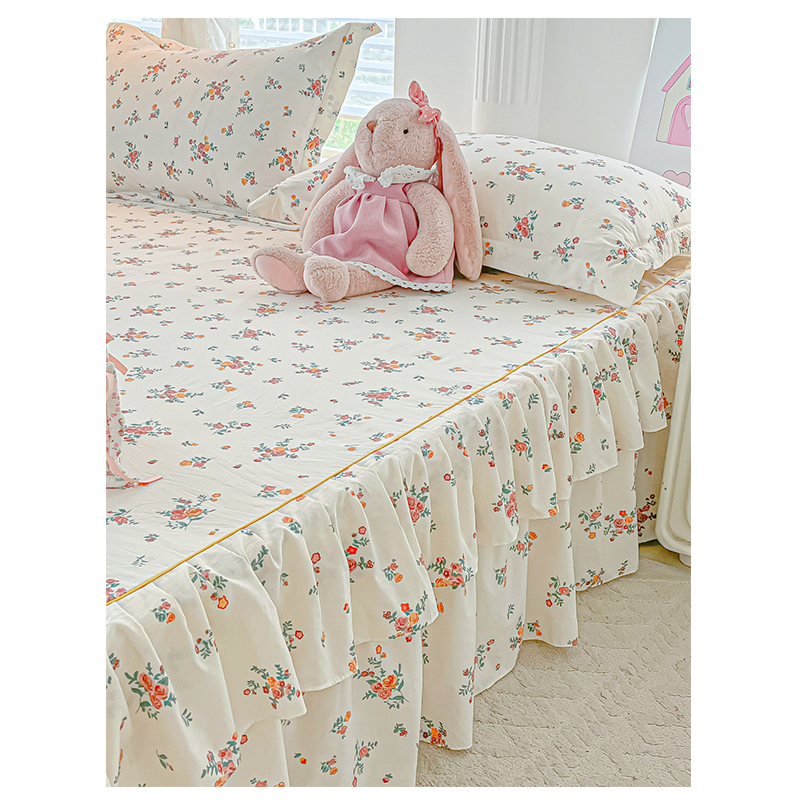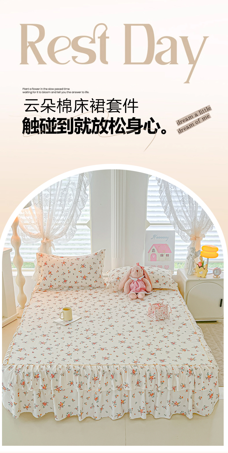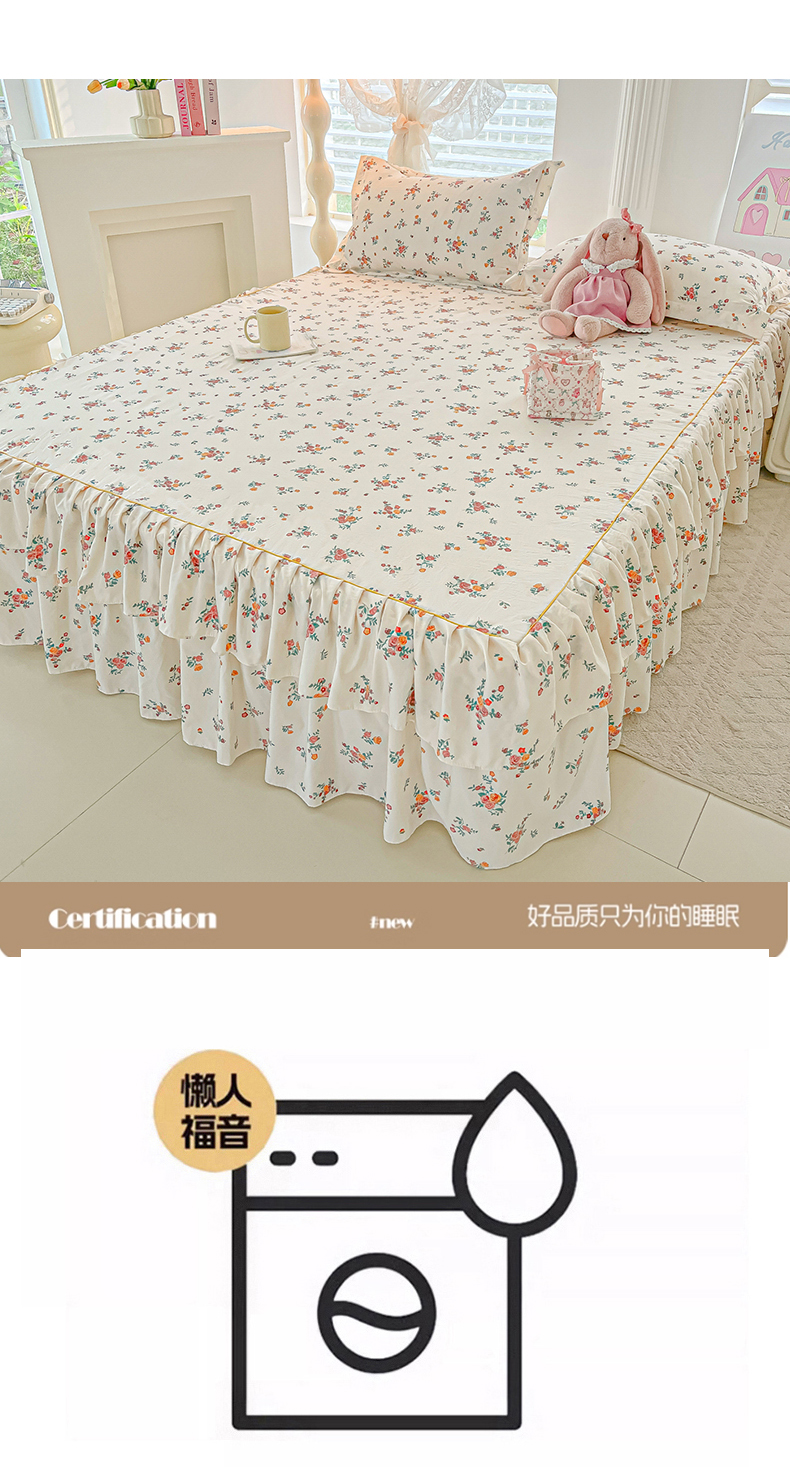 商品名称:子钦家纺 2025新款云朵棉水洗棉韩版双层花边公主风床裙床裙三件套 床裙-玫瑰奶糖
