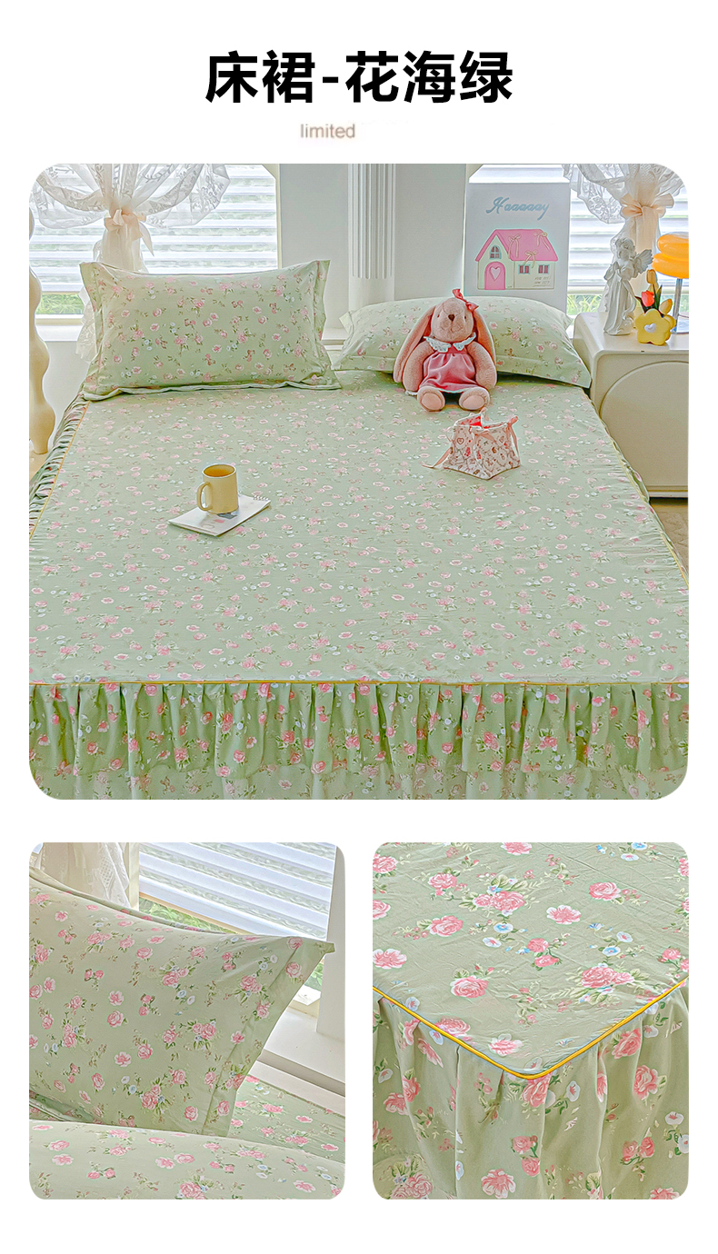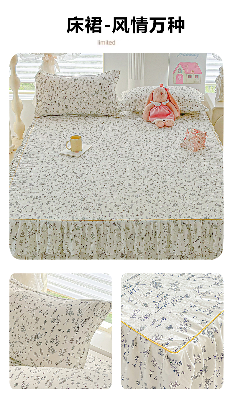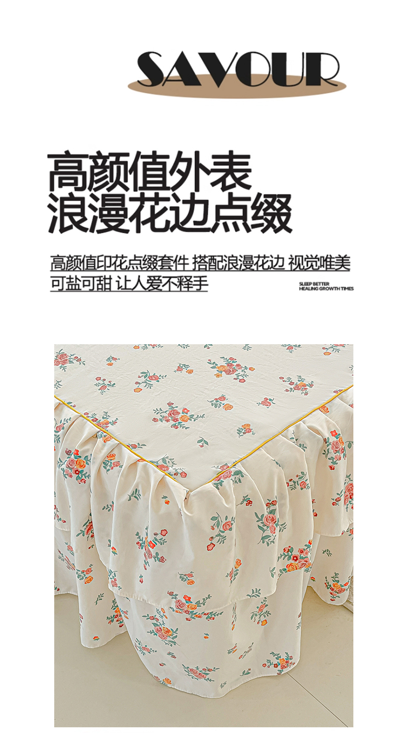 商品名称:子钦家纺 2025新款云朵棉水洗棉韩版双层花边公主风床裙床裙三件套 床裙-玫瑰奶糖