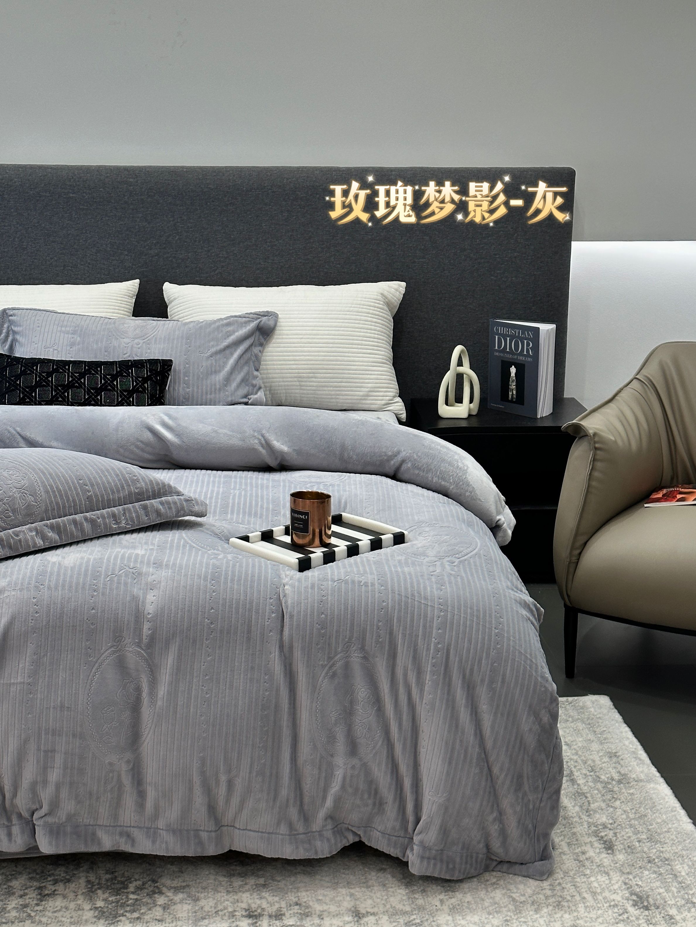 商品名称:JUICY 橘滋家纺 2025新款高级简约立体提花浮雕牛奶绒系列四件套 玫瑰梦影-浅玉