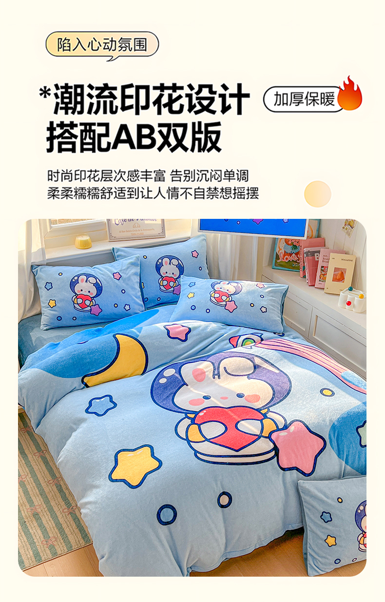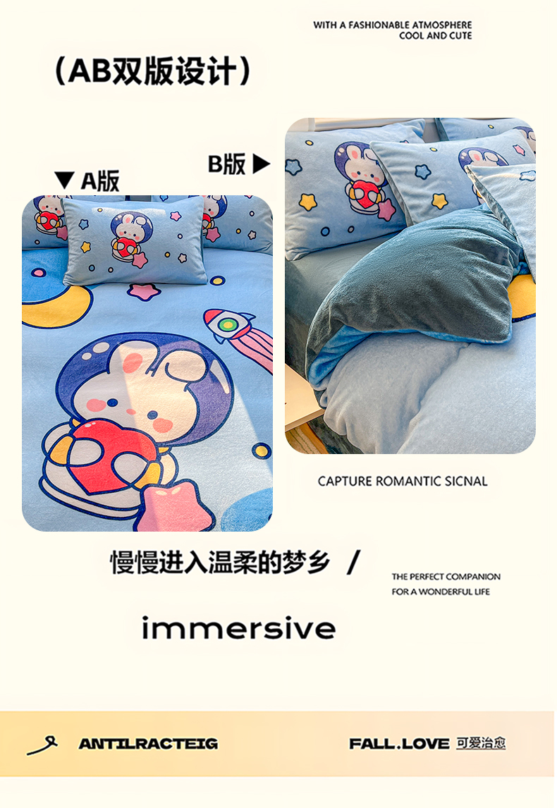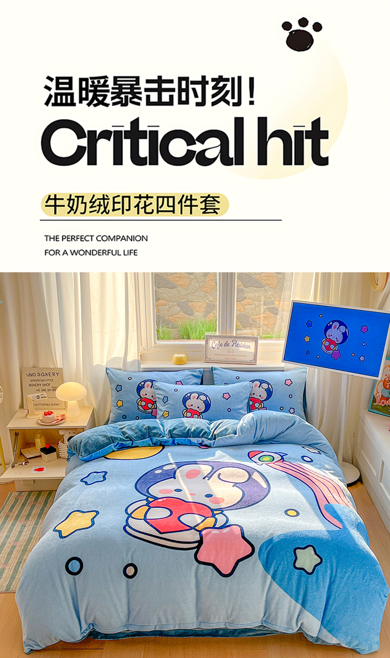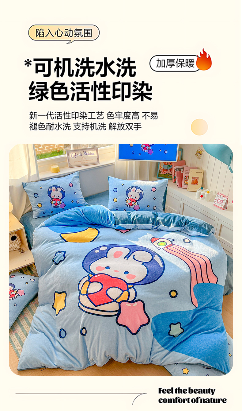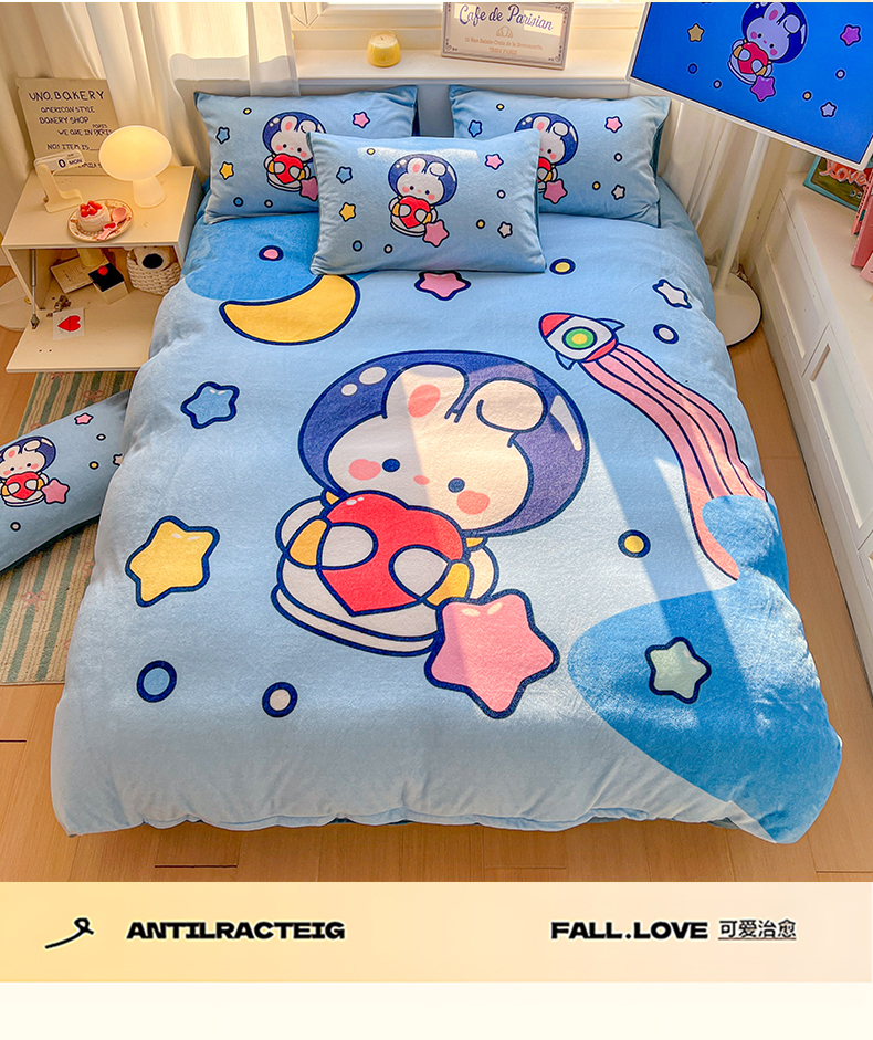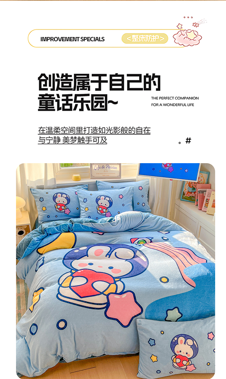 当前位置: 91家纺网 > 商品网购 > 床品套件 > 四件套 > 牛奶绒四件套 > 浩诚 2025新款高克重原创设计宇航员太空人牛奶绒大版卡通四件套 小兔遨游