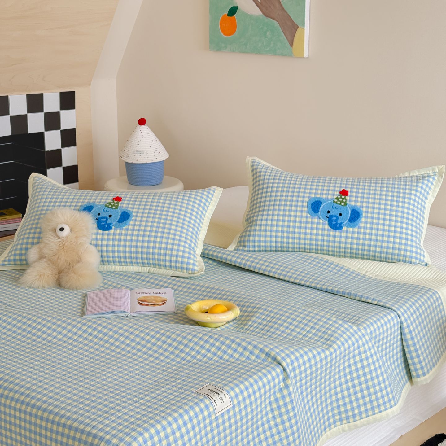 觅糖家纺 2025新款色织水洗棉毛巾绣床盖四件套 帽子熊