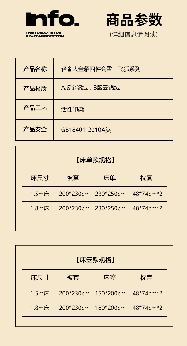 [{"sp_id":11,"sp_name":"\u989c\u8272","sp_format":2,"sp_list":[{"sp_value_id":1662,"sp_value_name":"\u96ea\u5c71\u98de\u72d0-\u68d5\u5496","sp_value_image":{"id":999,"path":"https:\/\/img3.91jf.com\/ghelp\/2025\/20251010\/20251010130030_823350.jpeg"},"sp_value_video":{"id":0,"img":"","path":"","time":0,"download_num":0,"play_num":0},"price":"265.00","storage":1000,"weight":"6.000","is_check_weight":0,"plus_price":"","sp_sort":0}]},{"sp_id":10,"sp_name":"\u5c3a\u5bf8","sp_format":1,"sp_list":[{"sp_value_id":41,"sp_value_name":"\u3010\u5e8a\u5355\u6b3e\u30111.5\u56db\u4ef6\u5957-\u88ab\u5957200x230","sp_value_image":{"id":0,"path":""},"sp_value_video":{"id":0,"img":"","path":"","time":0,"download_num":0,"play_num":0},"price":"265.00","storage":500,"weight":"6.000","is_check_weight":0,"plus_price":"","sp_sort":5},{"sp_value_id":42,"sp_value_name":"\u3010\u5e8a\u5355\u6b3e\u30111.8\u56db\u4ef6\u5957-\u88ab\u5957200x230","sp_value_image":{"id":0,"path":""},"sp_value_video":{"id":0,"img":"","path":"","time":0,"download_num":0,"play_num":0},"price":"265.00","storage":500,"weight":"6.000","is_check_weight":0,"plus_price":"","sp_sort":6}]}]