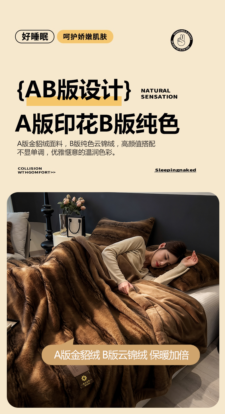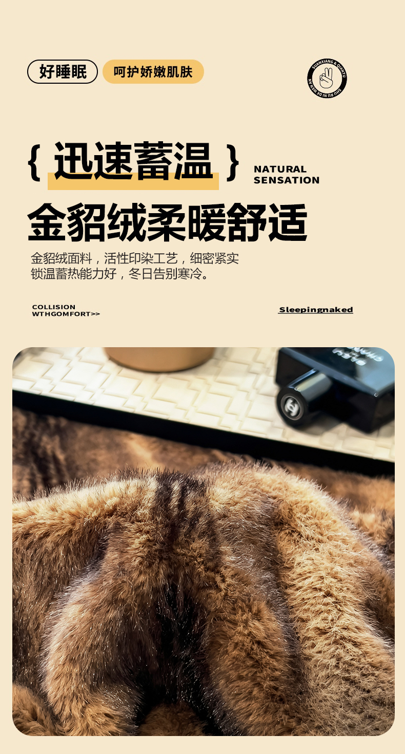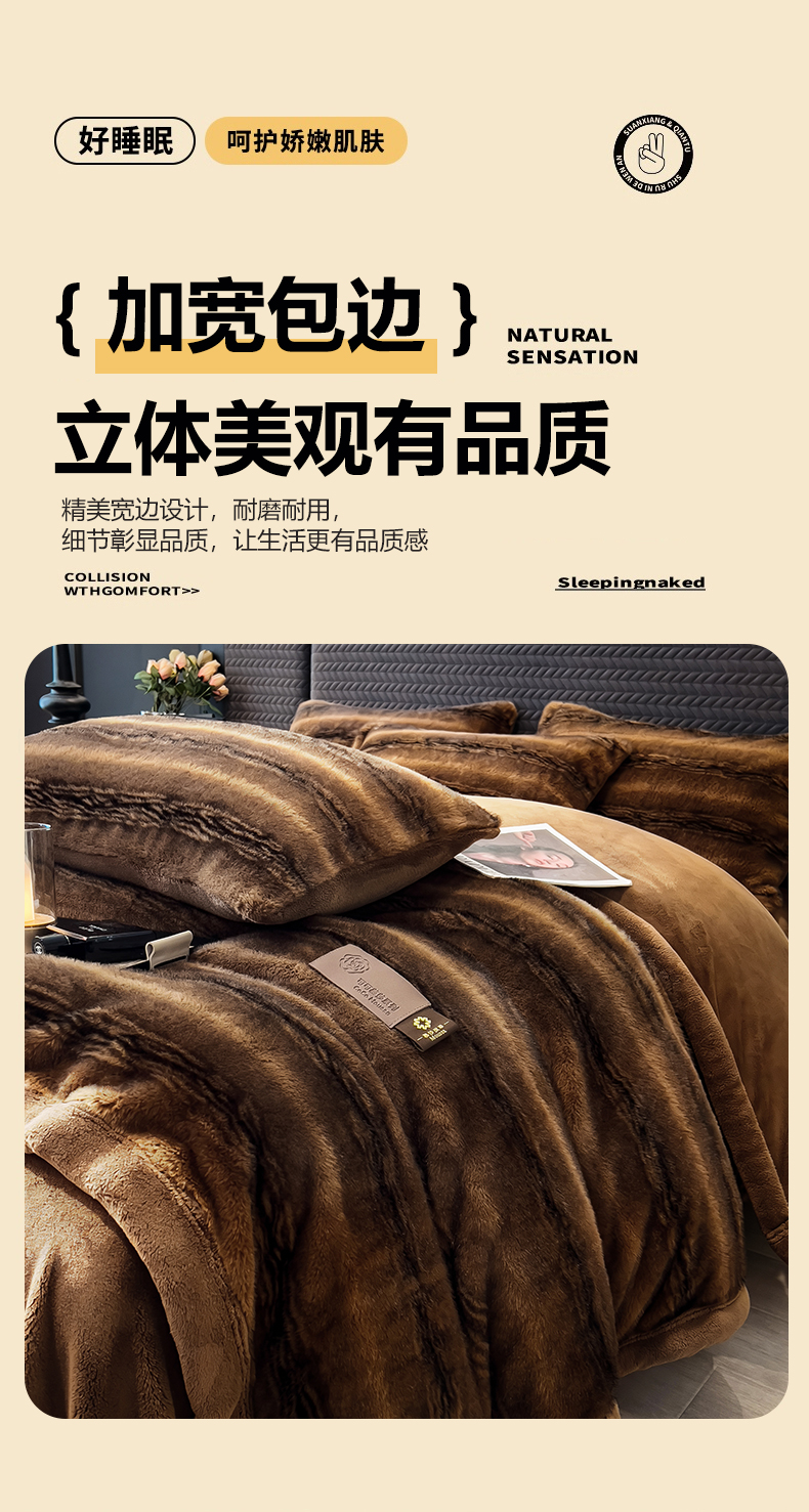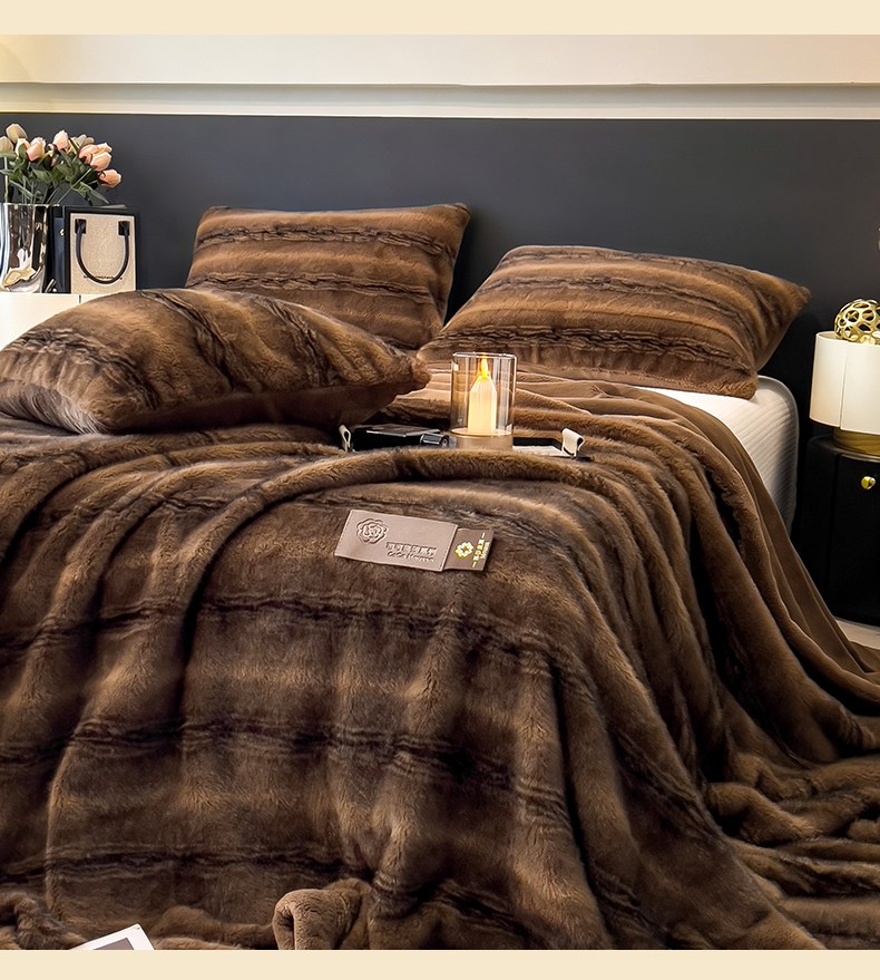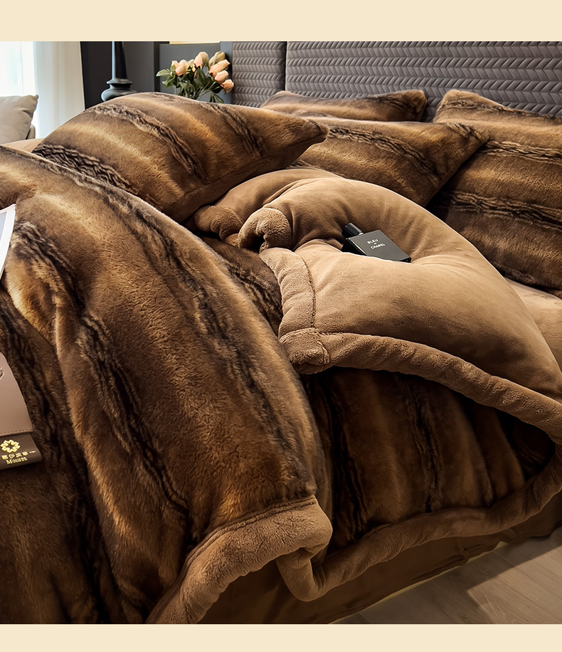 慕木家纺 2025新款轻奢大金貂四件套雪山飞狐系列 雪山飞狐-棕咖