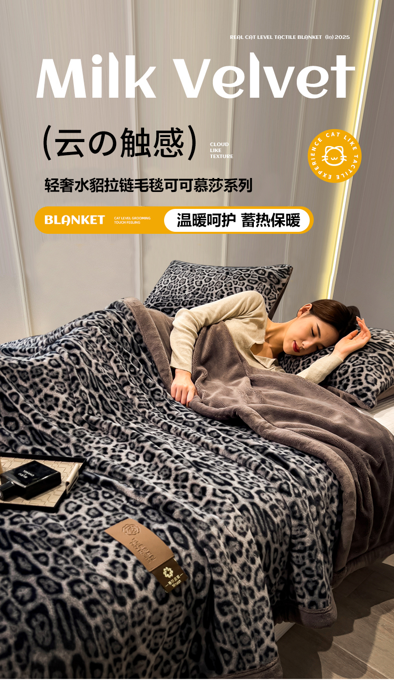 慕木家纺 2025新款轻奢水貂拉链毛毯可可慕莎系列 可可慕莎-魅影蓝灰
