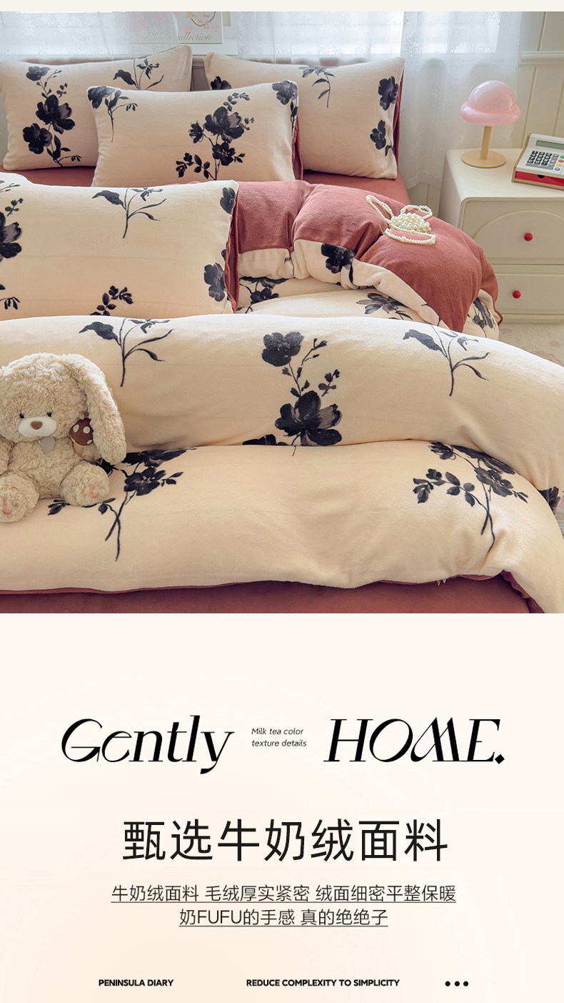 当前位置: 91家纺网 > 商品网购 > 床品套件 > 四件套 > 牛奶绒四件套 > 灿哈家纺 2025新款200g加厚款小清新牛奶绒印花四件套 花语情怀