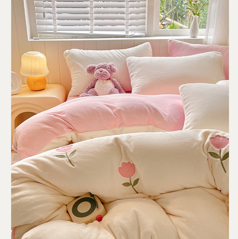 (总)仔仔熊 2025新款牛奶绒纯色双拼四件套,粉色+灰色,黄色+粉色,黄色+蓝色,黄色+绿色,灰色+橙色,卡其+咖色