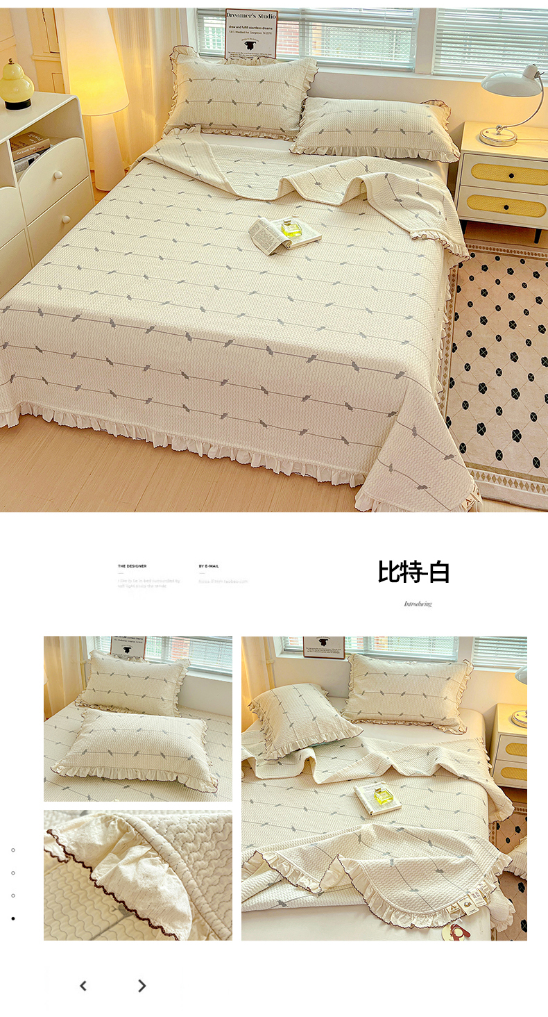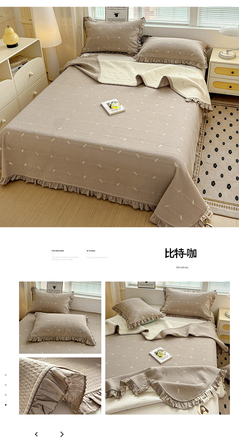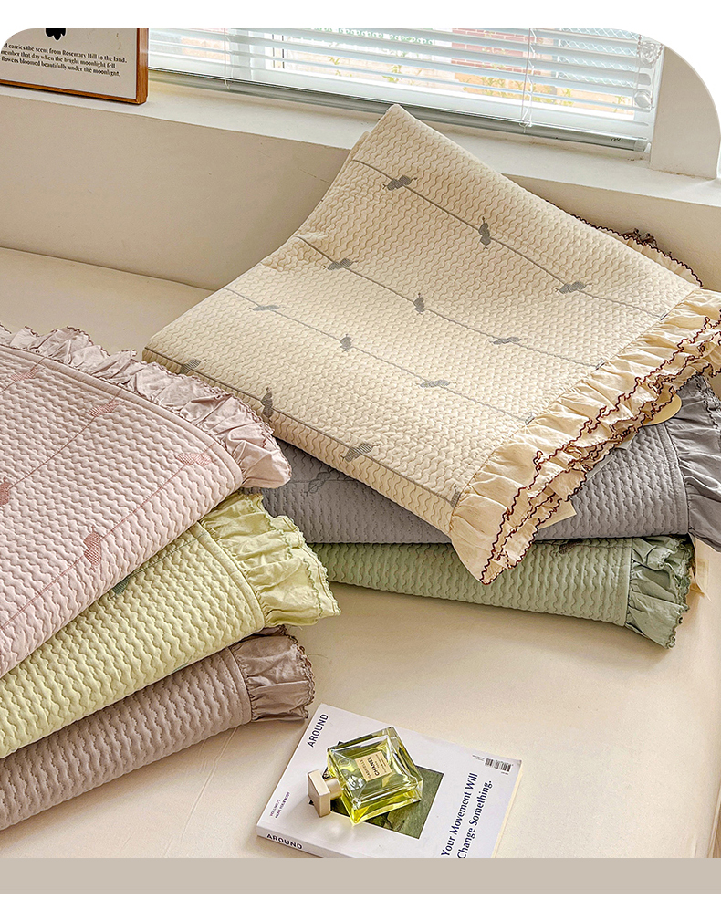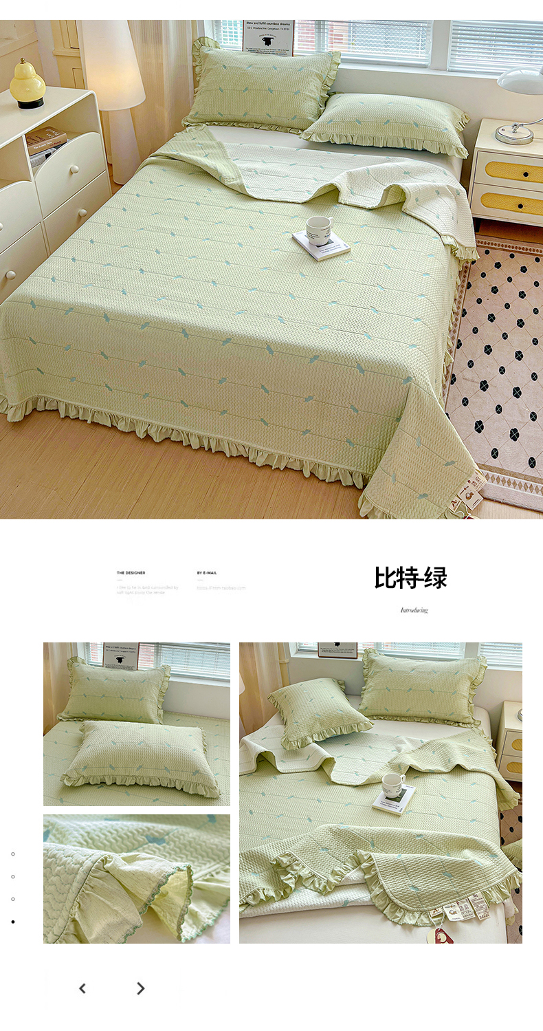 (总)源舜家纺 2025新款色织棉简约韩系花边床盖三件套,简约灰,简约粉,简约绿,简约驼,简约蓝