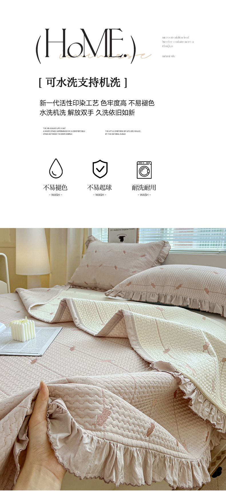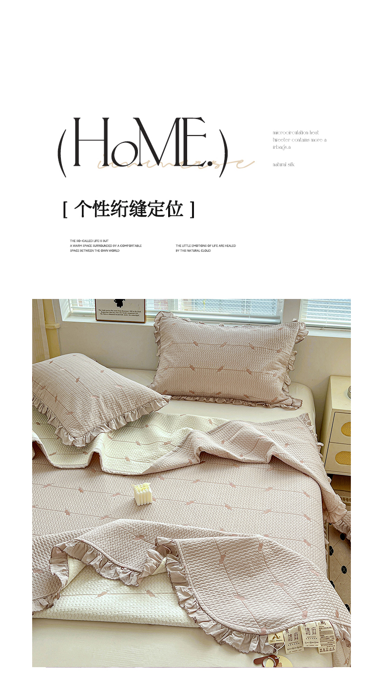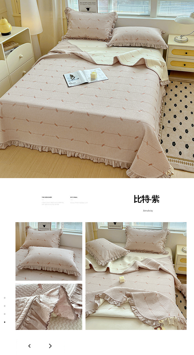 (总)源舜家纺 2025新款色织棉简约韩系花边床盖三件套,简约灰,简约粉,简约绿,简约驼,简约蓝