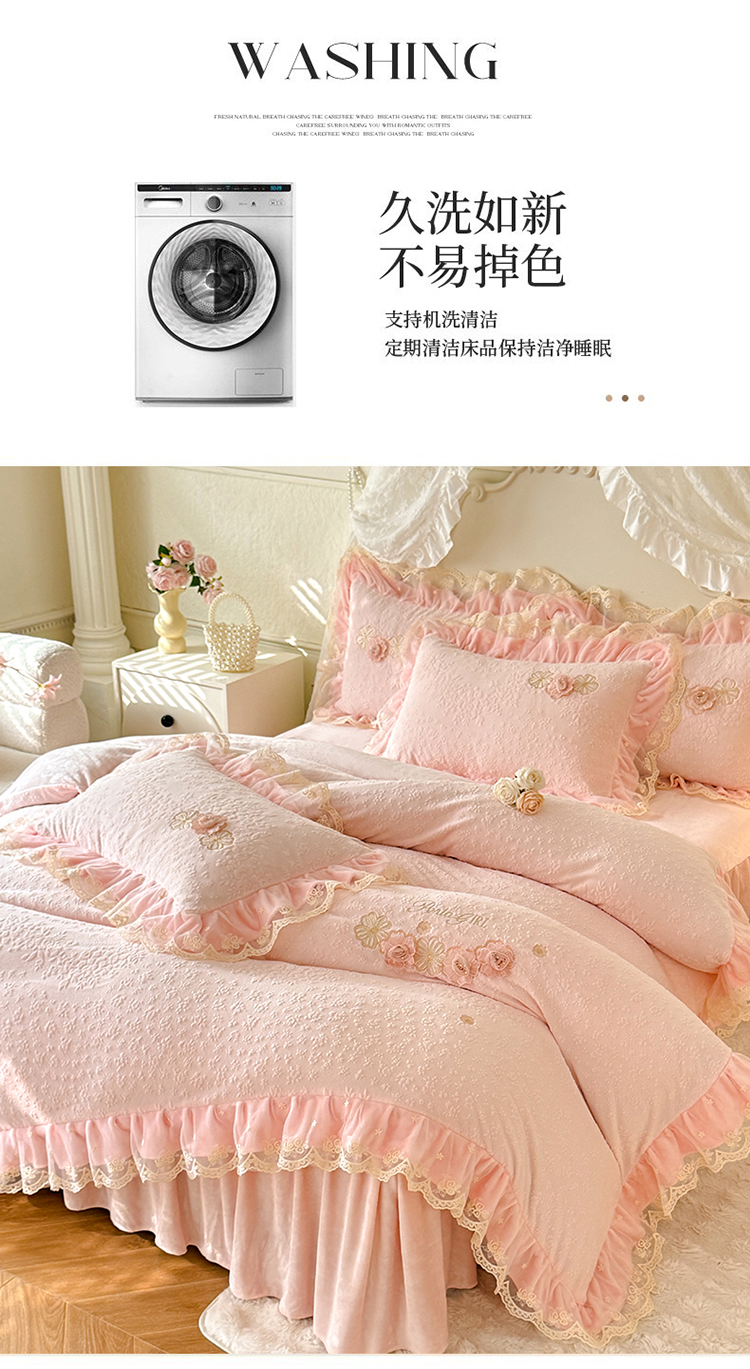 当前位置: 91家纺网 > 商品网购 > 床品套件 > 四件套 > 牛奶绒四件套 > 2025漫布云纺360g全消光牛奶绒工艺款蕾丝盘花立体雕花绒牛奶绒四件套刺绣绣花套件 温婉-珍珠粉