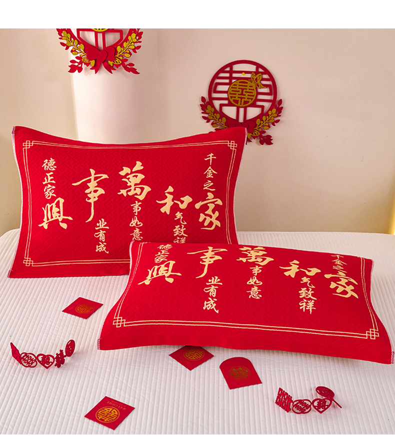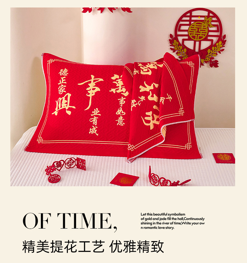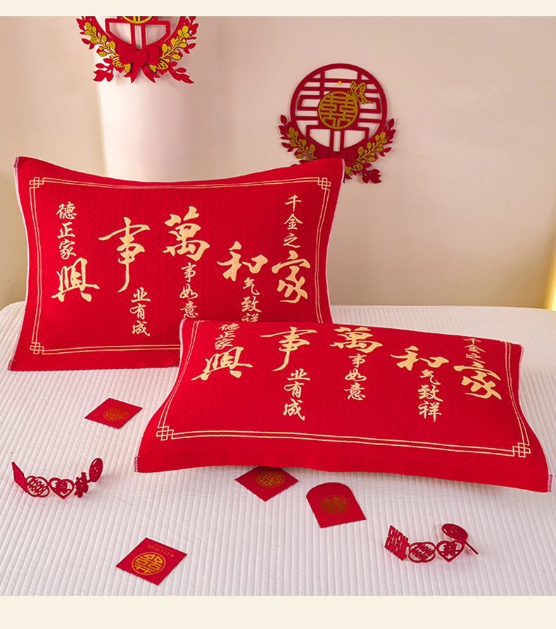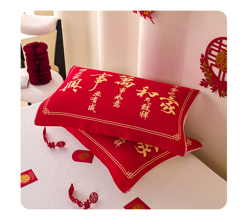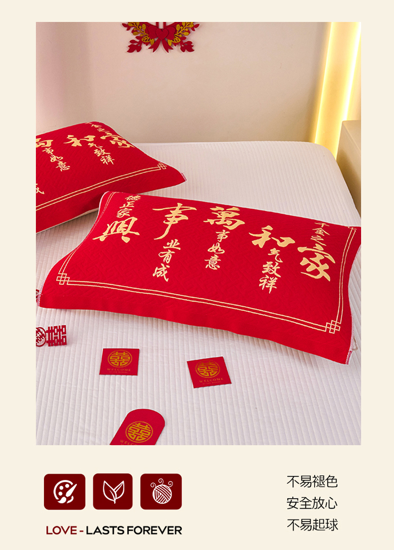 悦然毛巾被 2025新款全棉三层纱大红枕巾 家和万事兴1