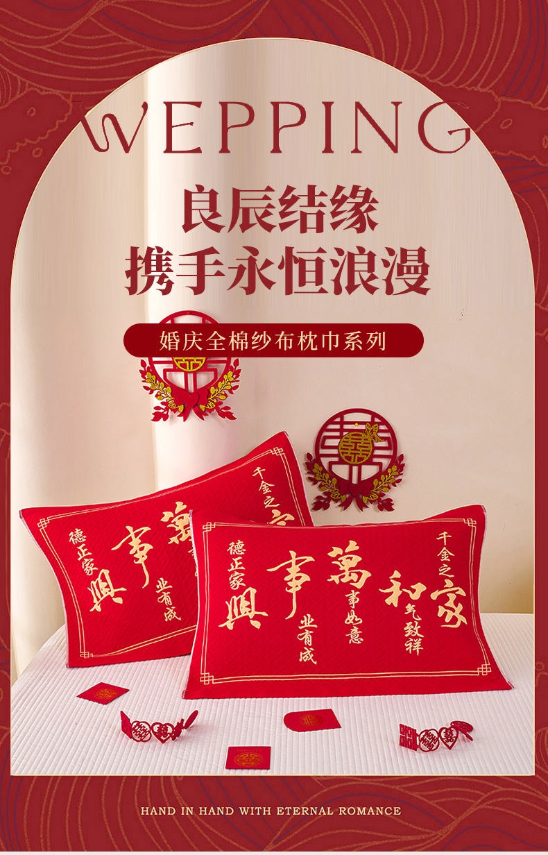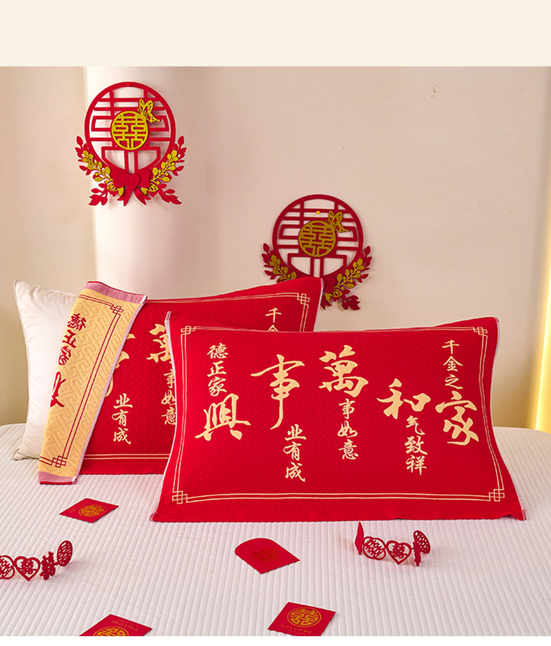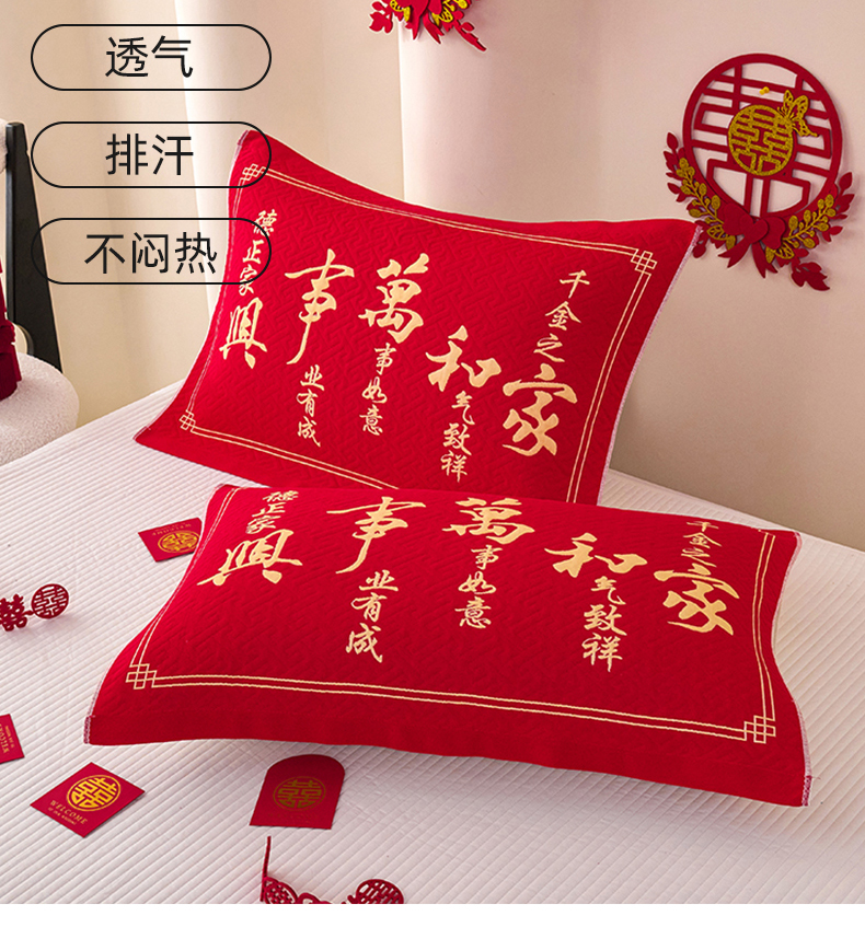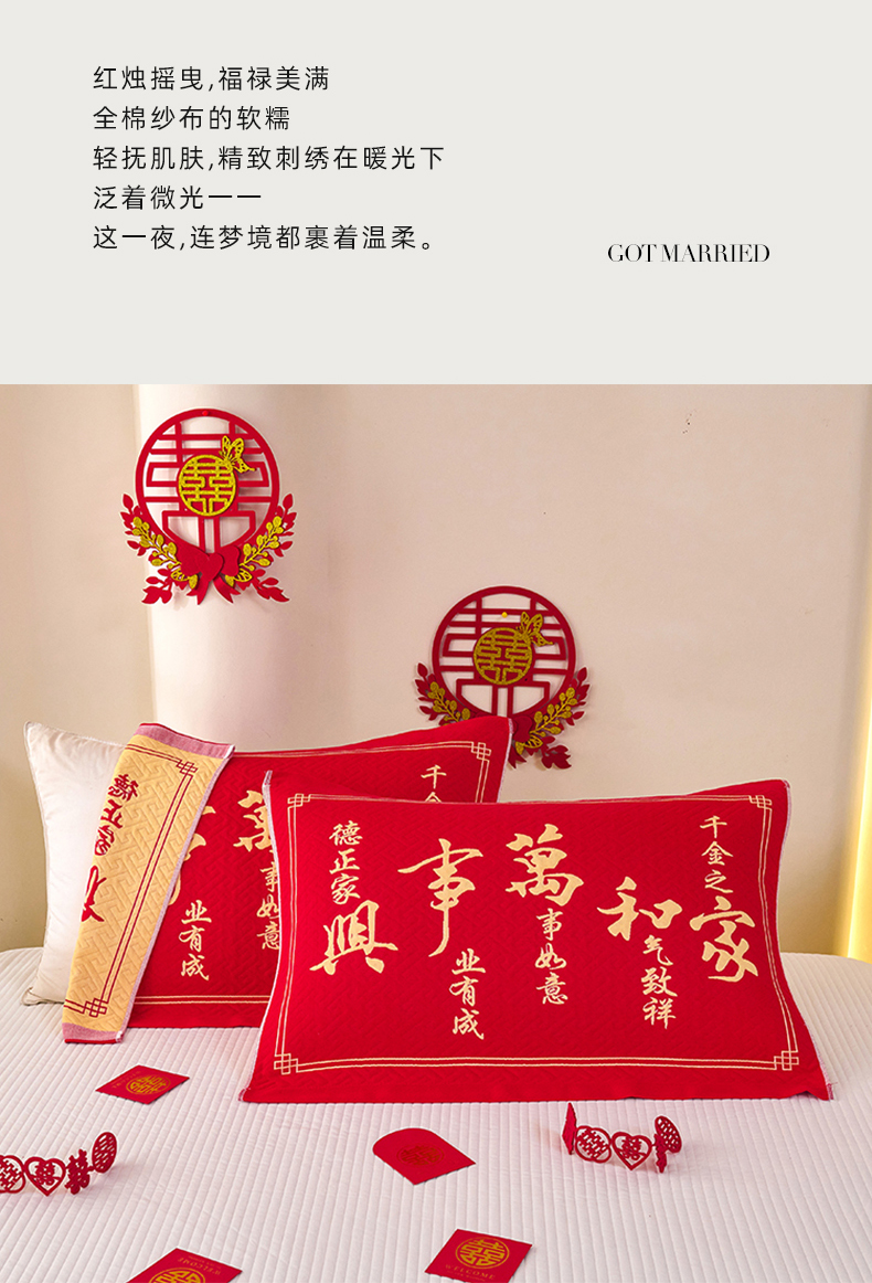 悦然毛巾被 2025新款全棉三层纱大红枕巾 家和万事兴1